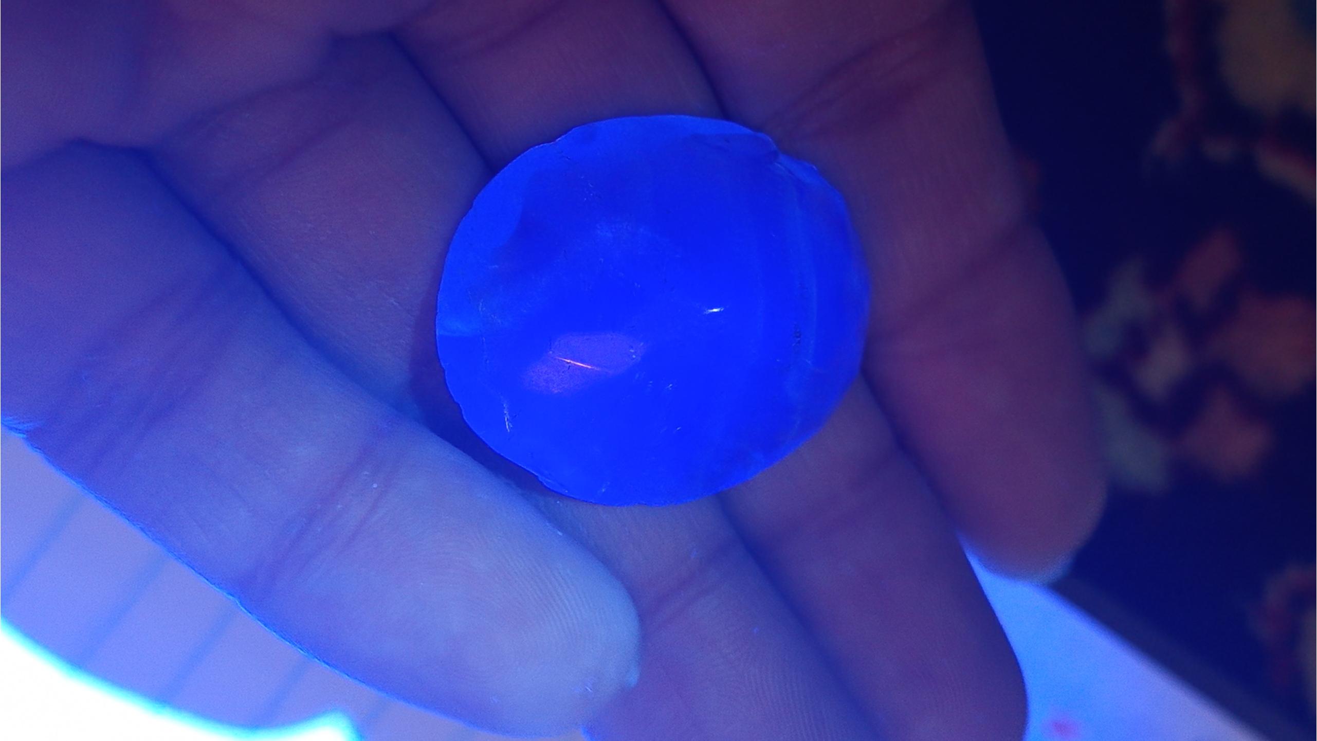 در زیر نور اشعه فرابنفش نگین به رنگ آبی تبدیل میشود به عکس پنجم نگاه کنید