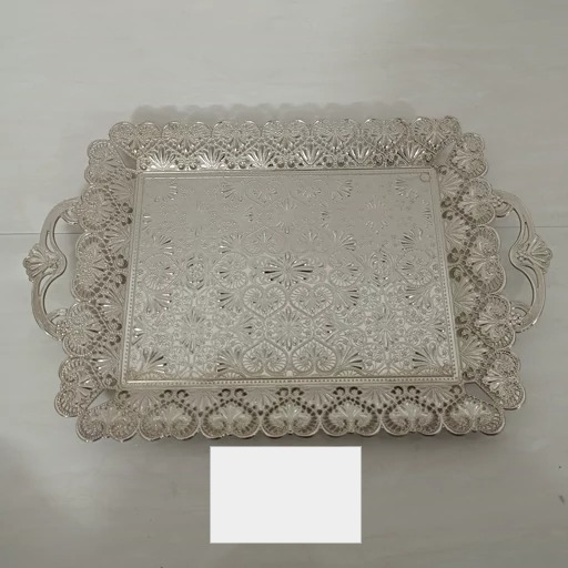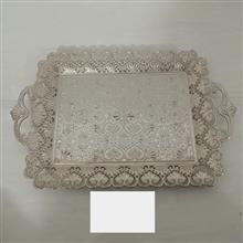 سینی چایخوری سیلور بزرگ نقره ای جنس سیلور طرح دار و کار شده ابعاد گذاشته شده