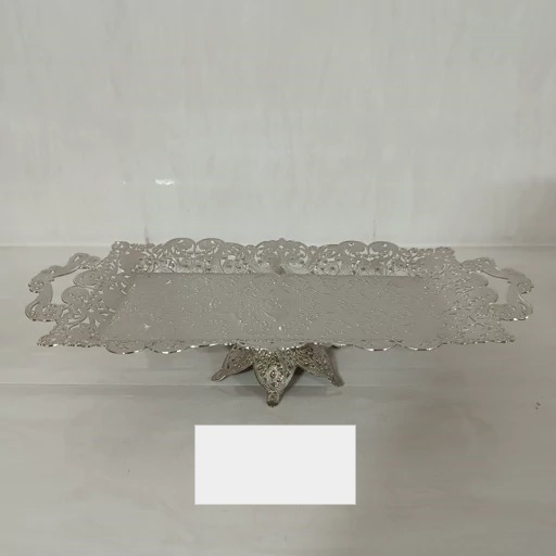 شیرینی خوری پایه دار یا سینی رولت خوری سیلور مستطیلesamesamابعاد گذاشته شده در تصویر esamجنس سیلور