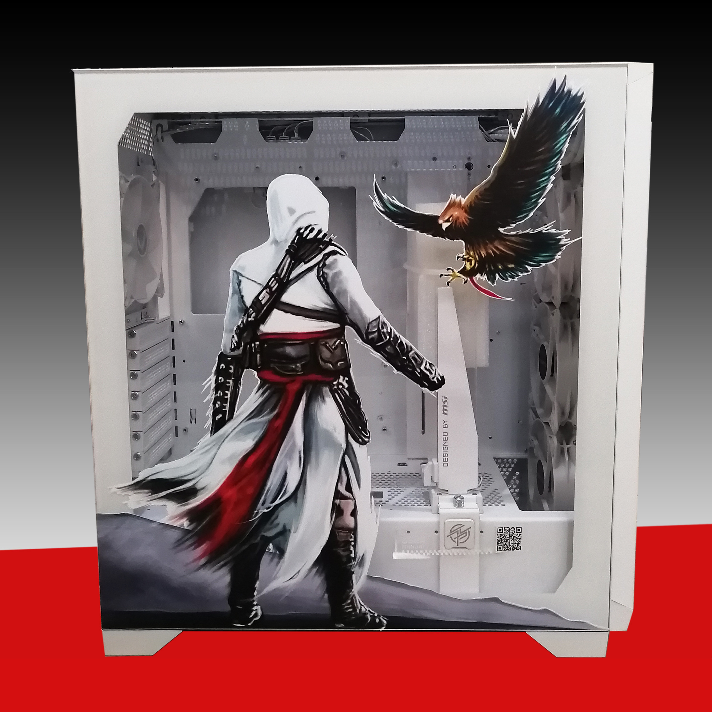 کیس کامپیوتر گیمینگ ام اس آی سفید کاستوم شده اساسین کرید مدل MSI MPG GUNGNIR 300R airflow Assassins creed