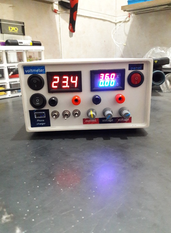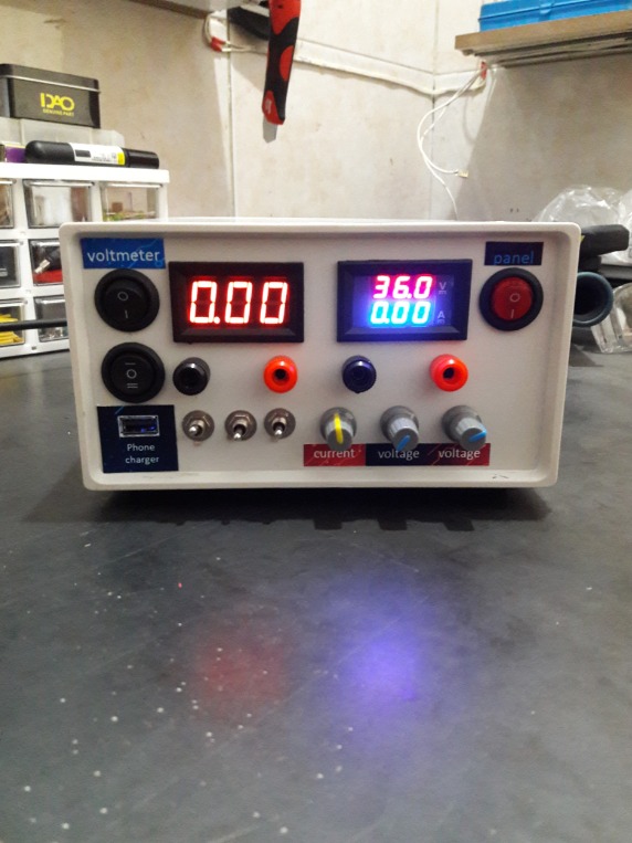 دارای یک ولتاژ متغییر از بازده 1.3 الی 36 ولت 5 آمپر + مدار محافظتی فیوز که در صورت اتصال کوتاه در کمتر از 1 ثانیه فیوز میسوزد و مانع آسیب به برد متغییر میشود. کاربرد این قسمت برای شارژ انواع باتری لیتیوم یون و سیلد اسید(تا 20 آمپر!!) و روشن کردن انواع مصرف کننده هست.