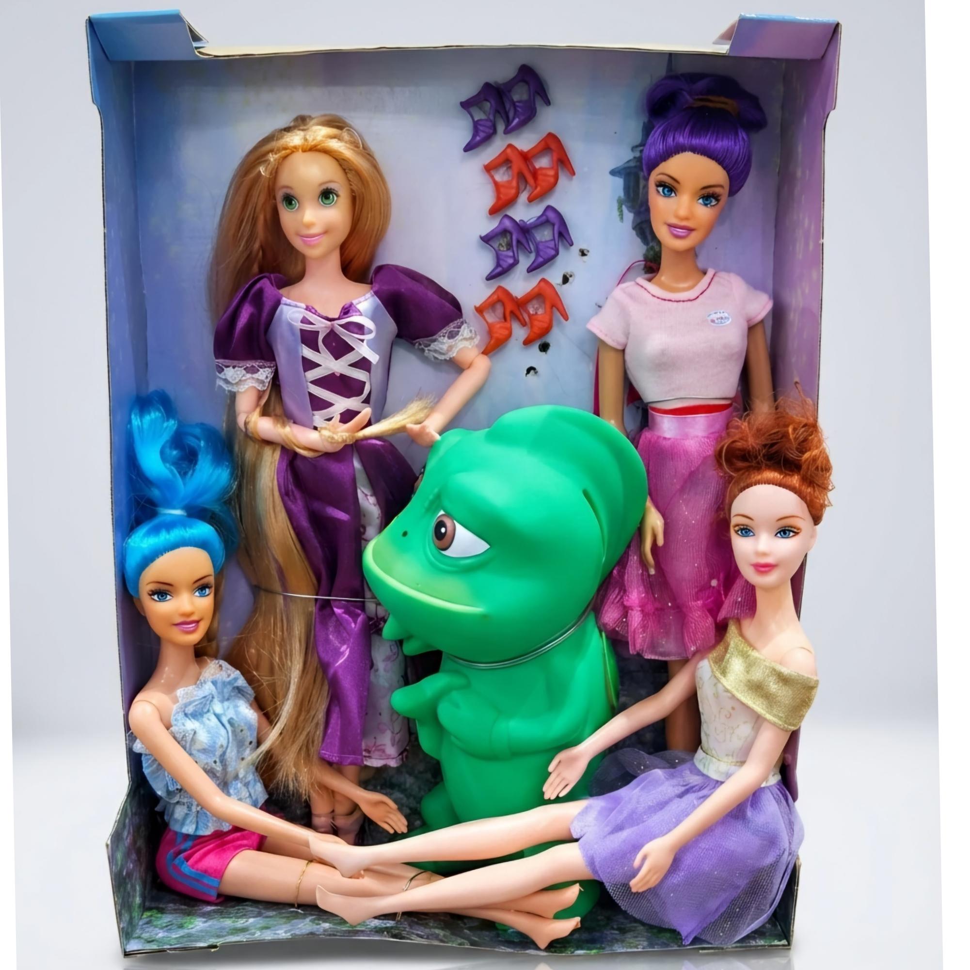 چهار عدد عروسک اورجینال و بسیار با کیفیت و تمام مفصلی به همراه قلک گیسوکمند