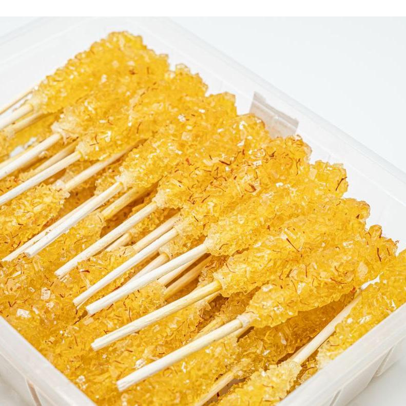 نبات چوبی زعفرانی 800 گرمی حاجکاظم، تهیهشده از زعفران اصل ایرانی و بدون بلانکیت، بلورهای طلایی و طعمی دلپذیر برای چای و دمنوش. خریدی مطمئن از برند اصیل.