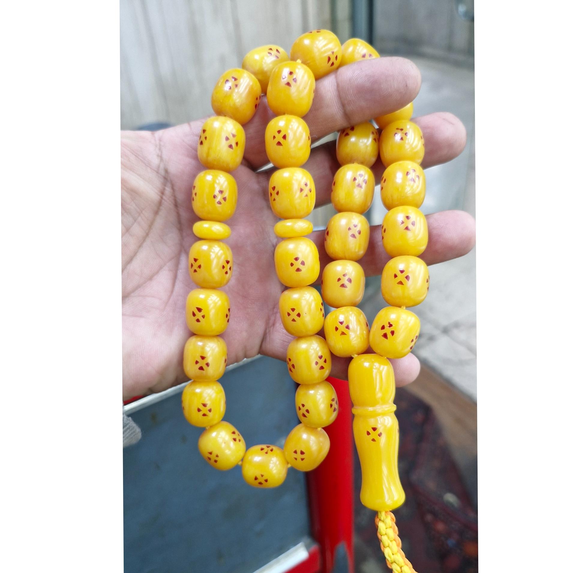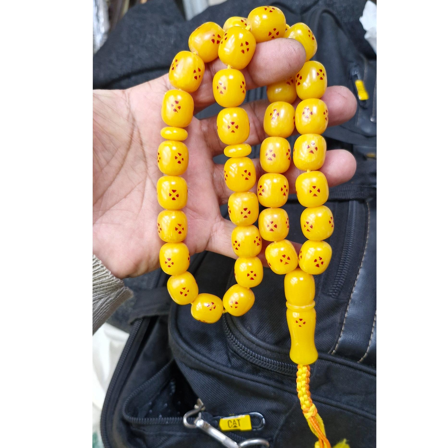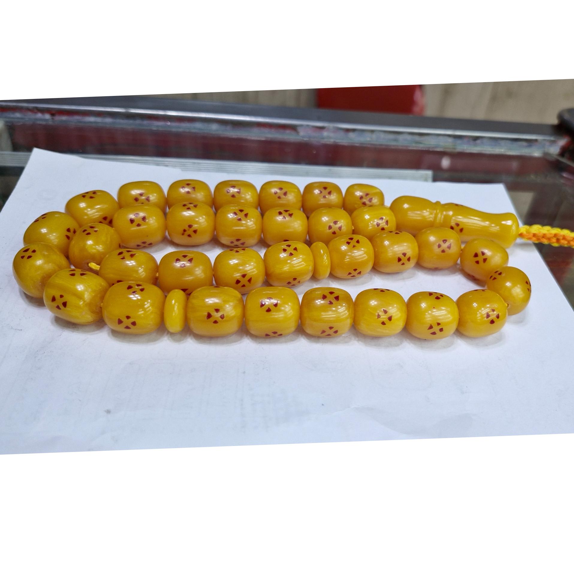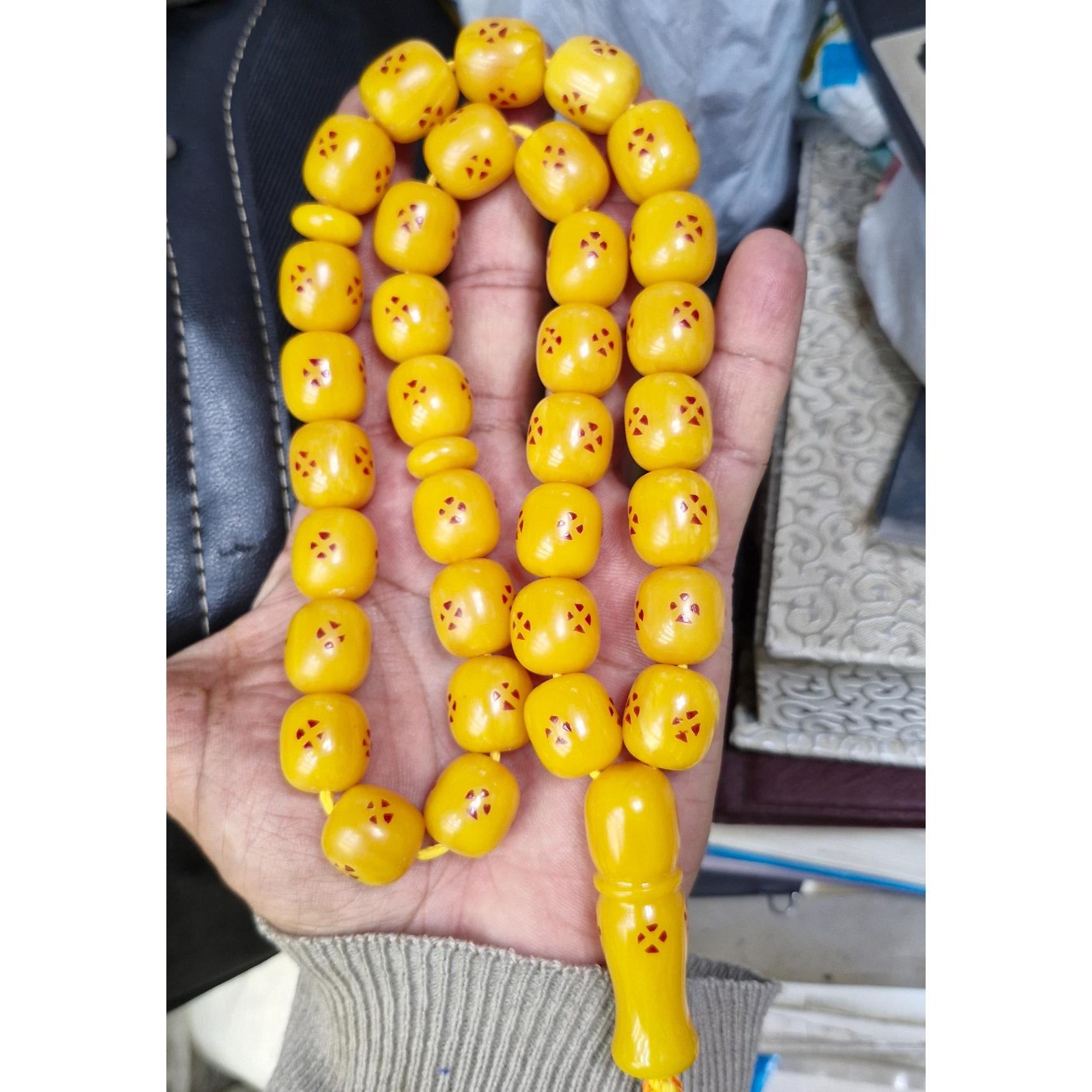 تسبیح سندلوس سی و سه دانه رگه دار شمش آلمان تراش دست وزن 123 گرم  طول34سانت