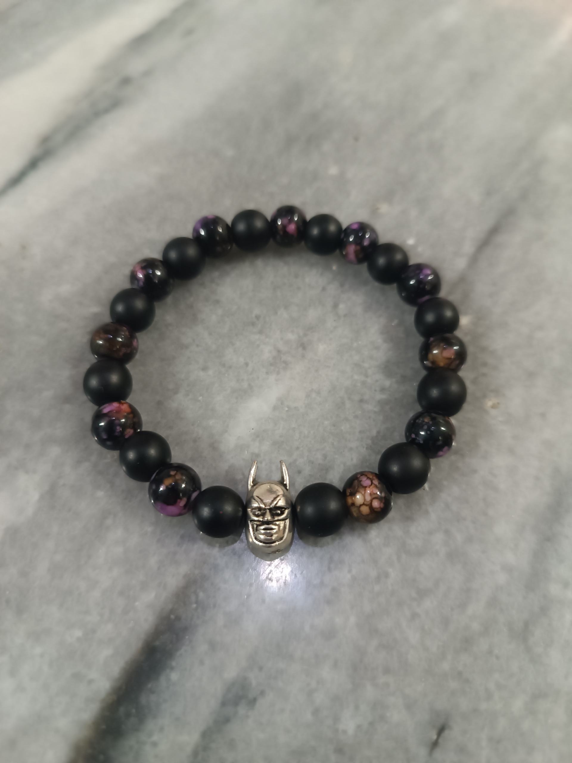 دستبند کشی مهره اونیکس با پلاک طرح بتمن