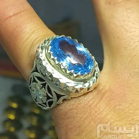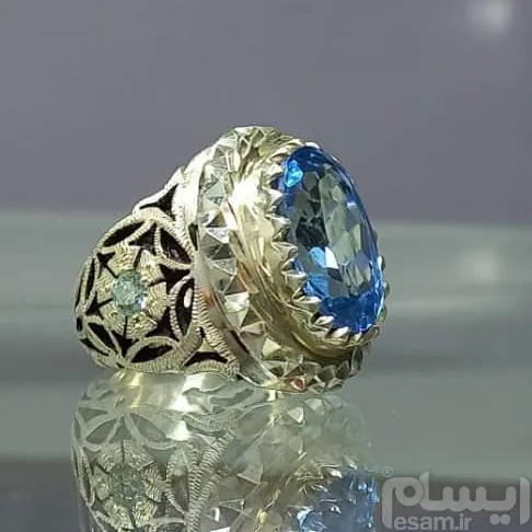 انگشتر توپاز بلو سوئیسی درجه یک اصل و معدنی15 قیراطی با سختی 7