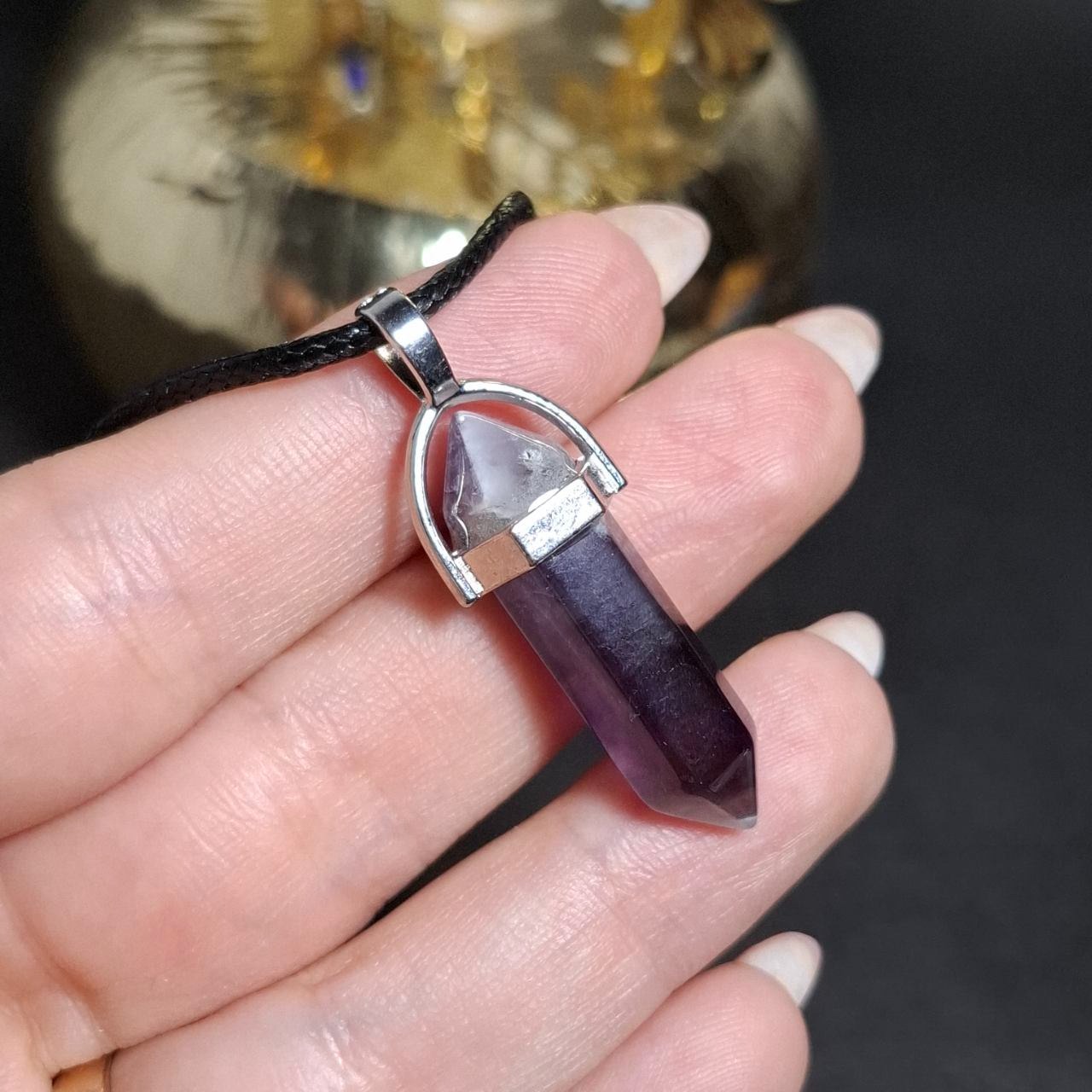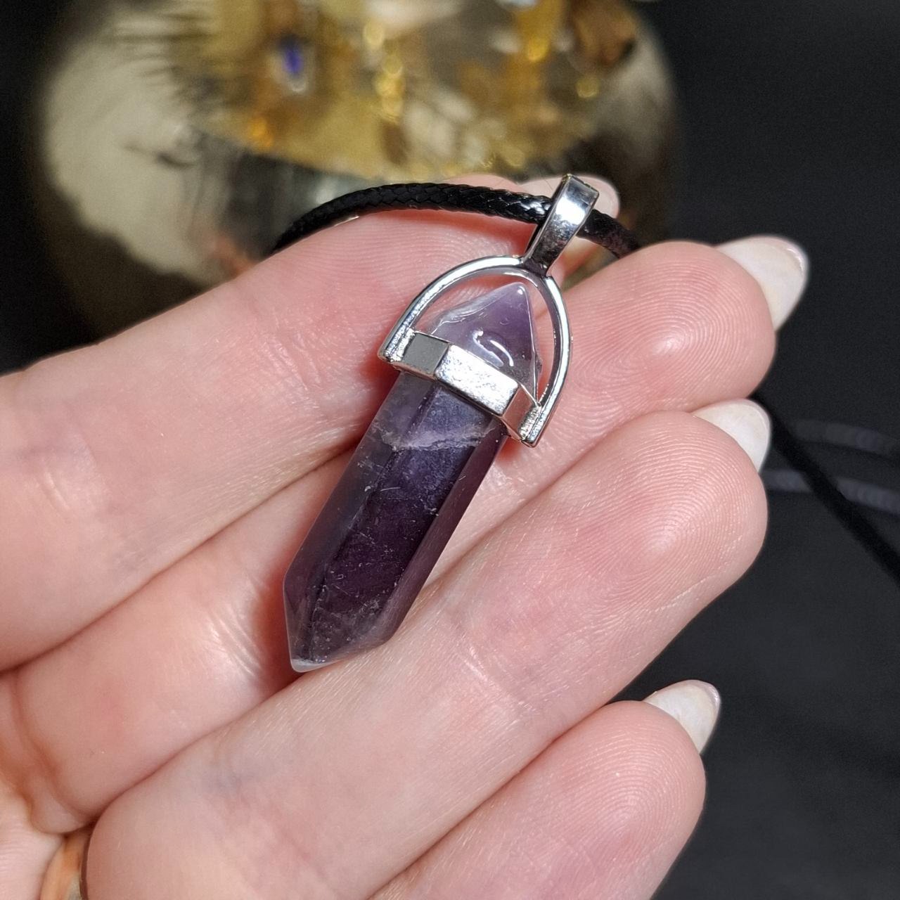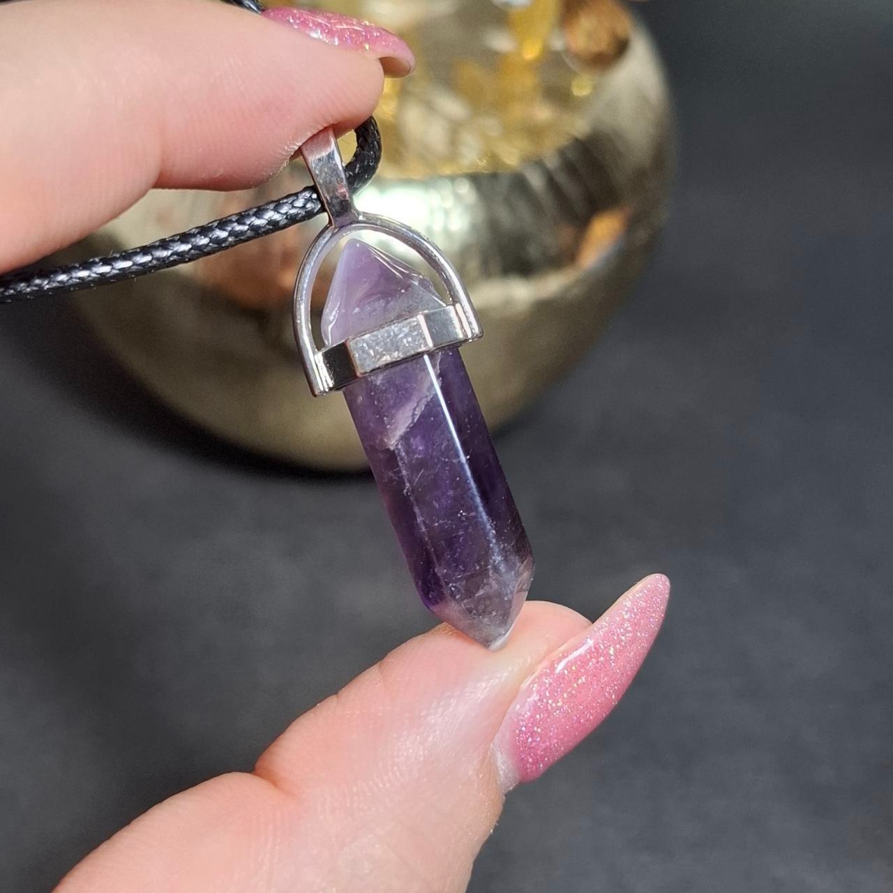 گردنبند آویز سنگ آمیتیست معدنی تراش منشوری