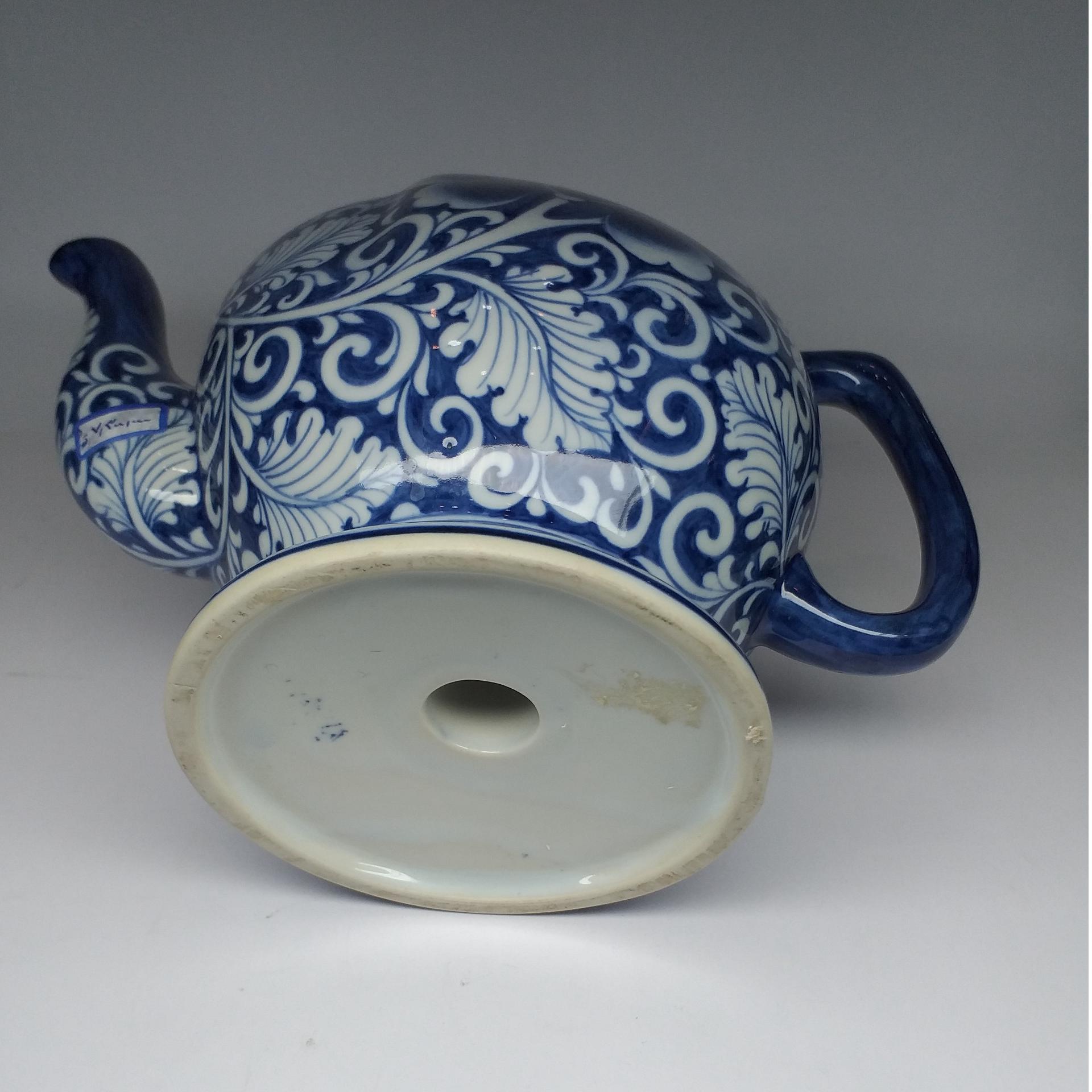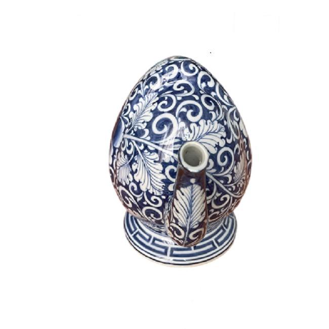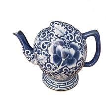 قوری سرامیکی آنتیک چینی (سبک قلم آبی) - طرح گل و بوتهی برجسته - با طرح خلاقانه بدون درب