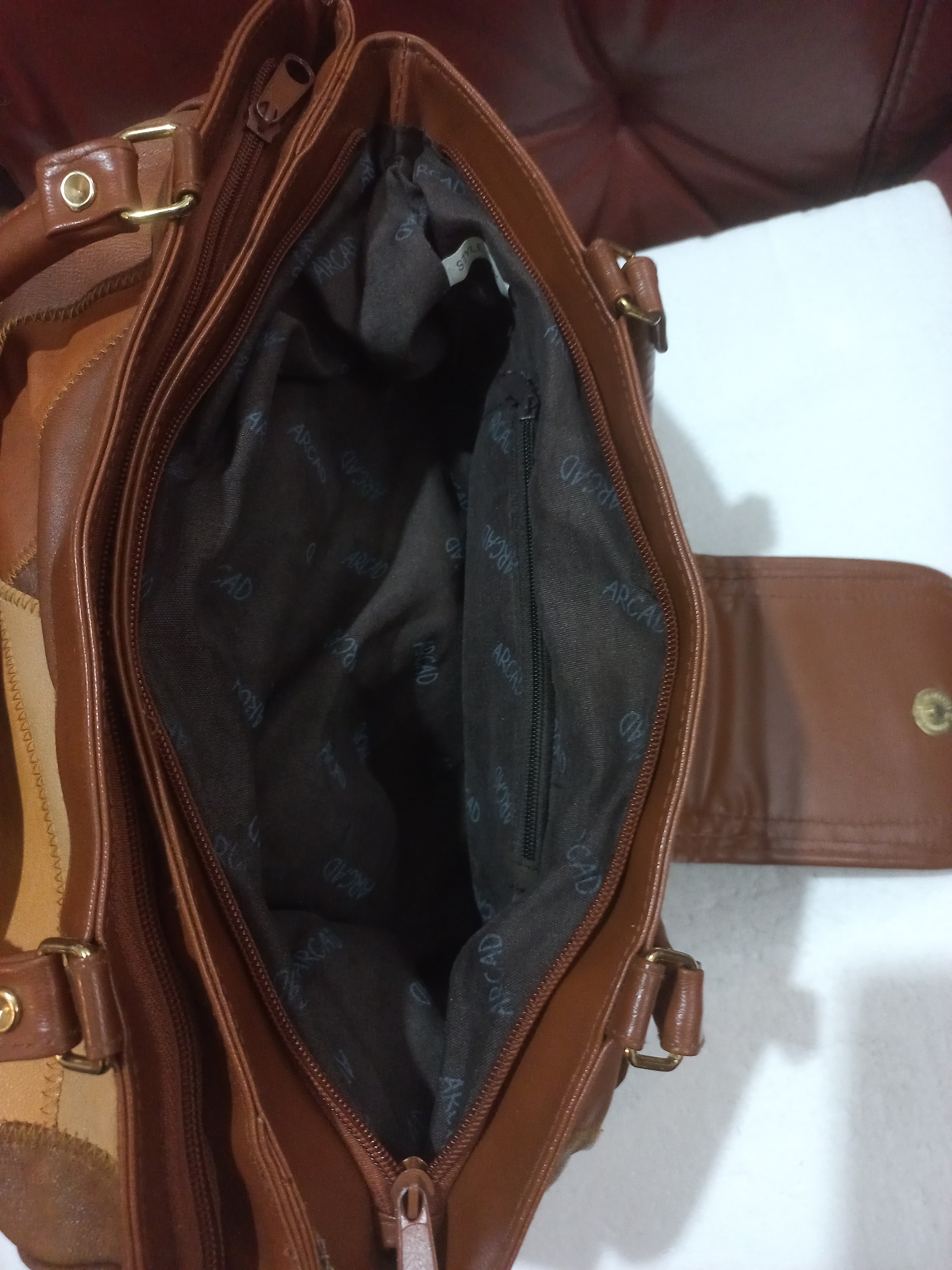 کیف چرمی ARCAD چند جیب دارد وطبق عکس قسمت پاین کیف هم زیپ دارد