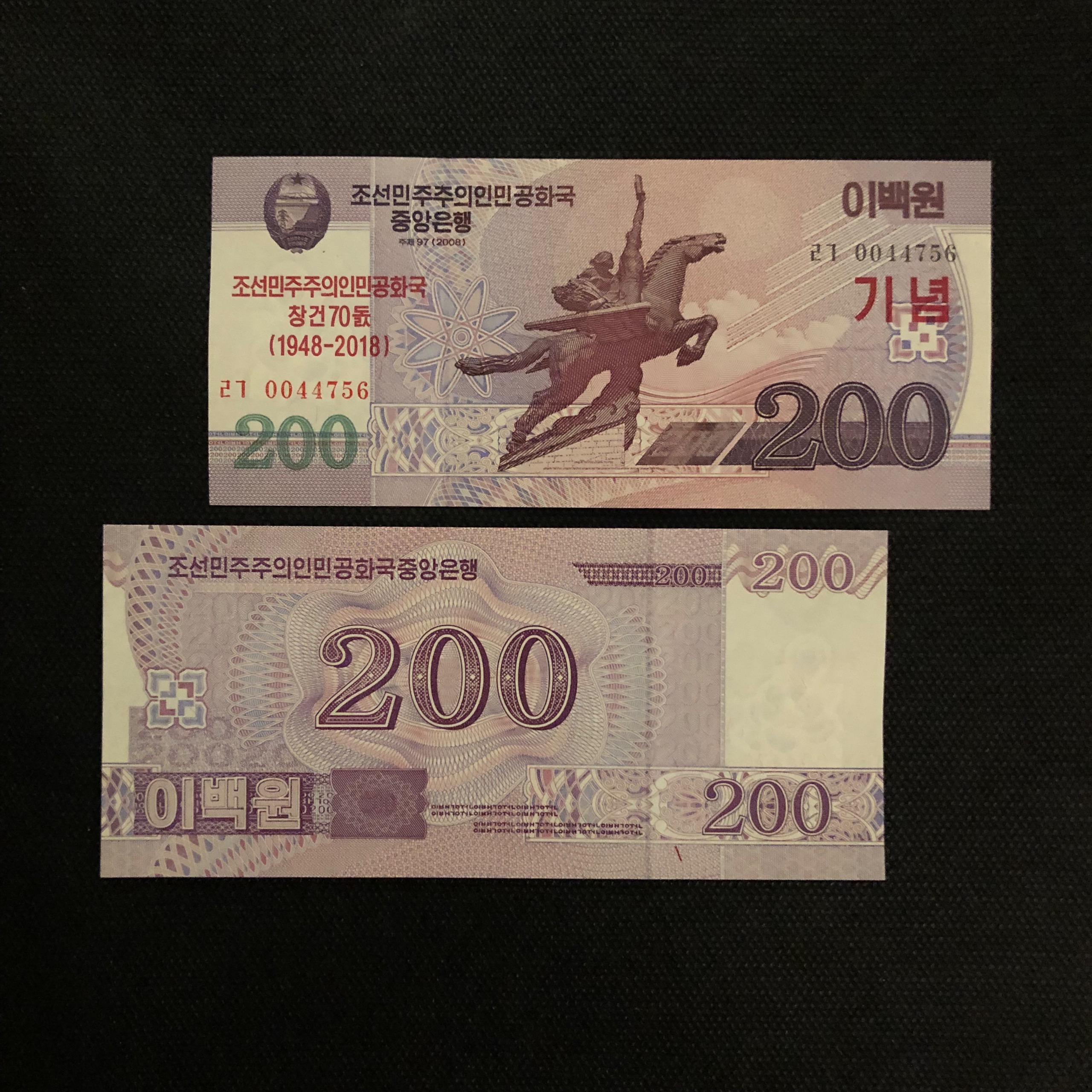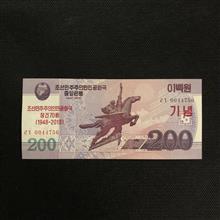 اسکناس تک بانکی 200 وون کره شمالی یادبودی
