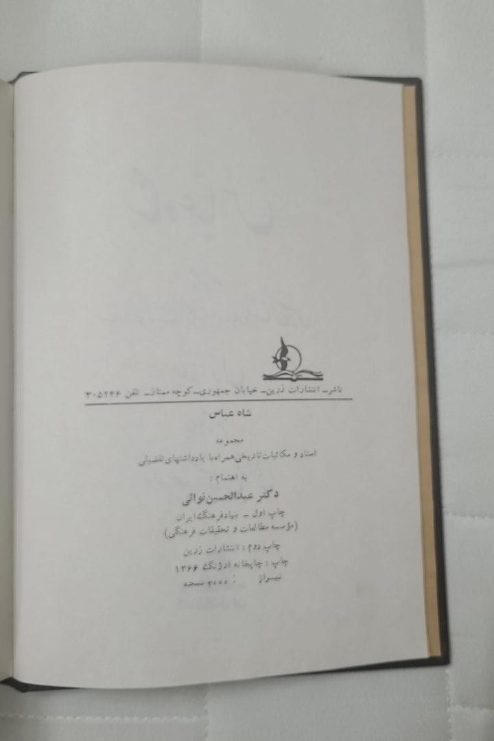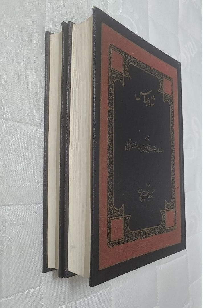 شاه عباس 3 جلدی در 2 کتاب مجموعه اسناد و مکاتبات تاریخی همراه با یادداشت های تفضیلی باهتمام دکتر عبدالحسین نوائی چاپ دوم انتشارات زرین قطع وزیری جلد گالینگور تمیز و سالم ( چند صفحه حاشیه یکی دو کلمه نوشته دارد)