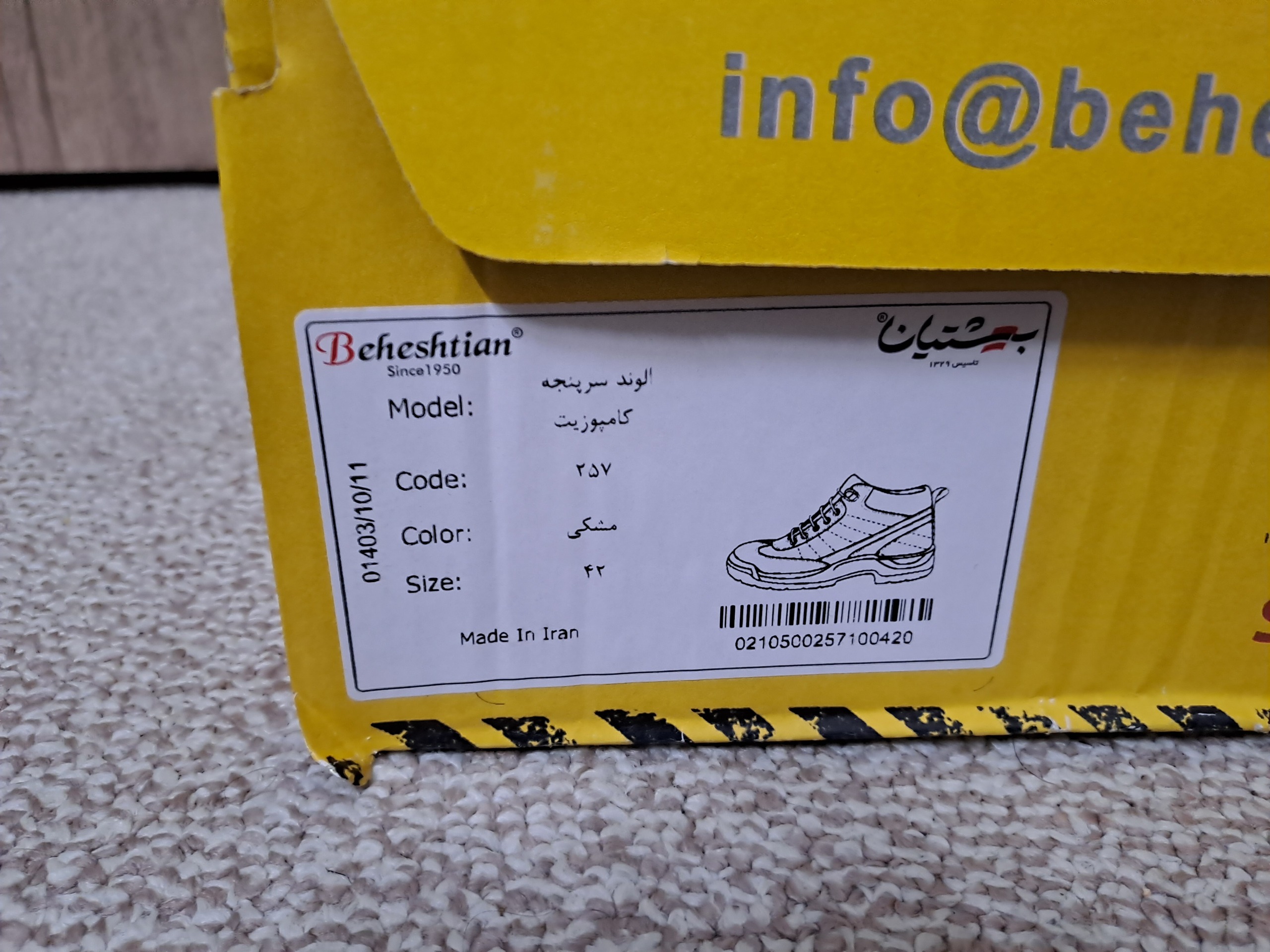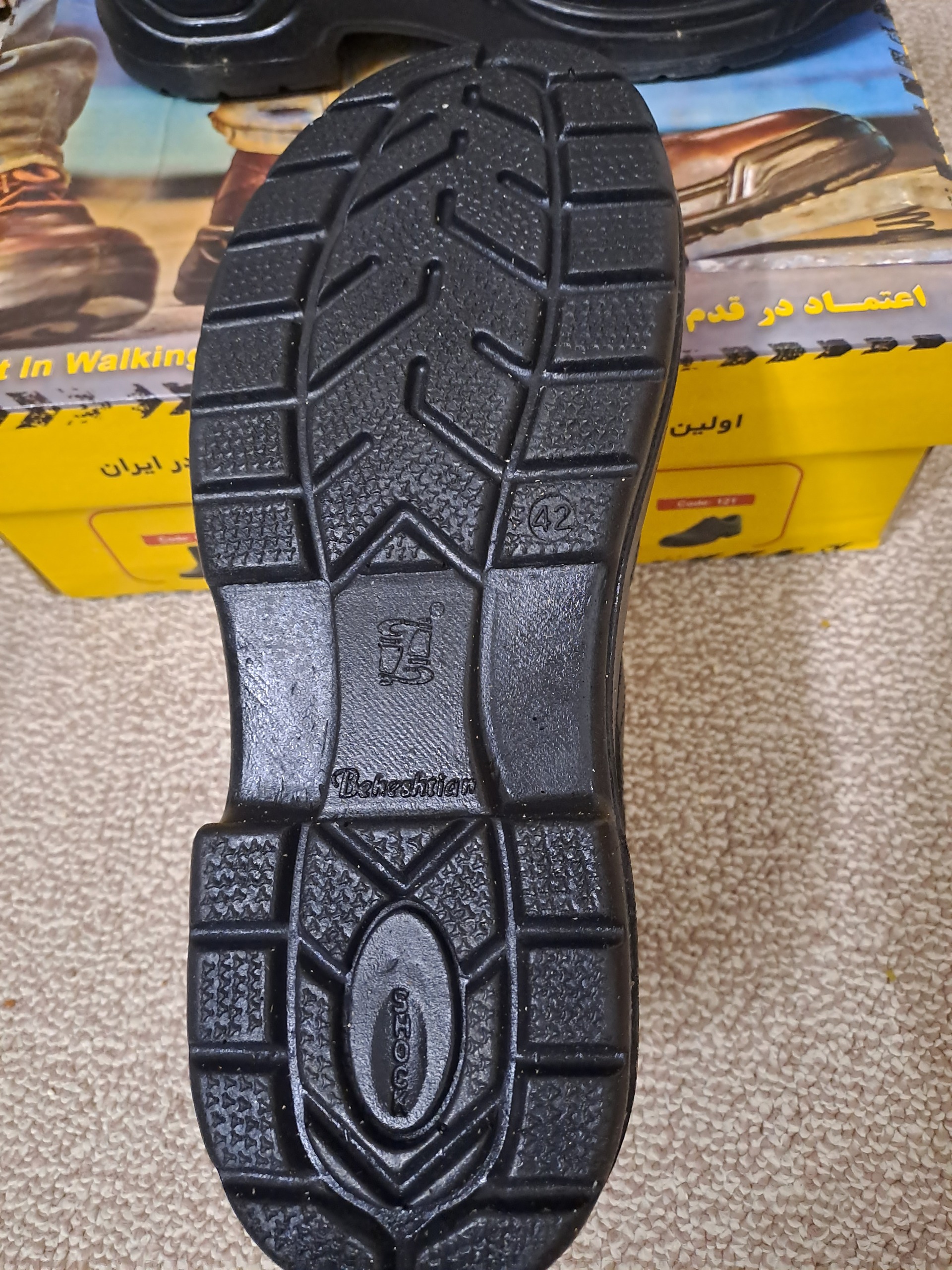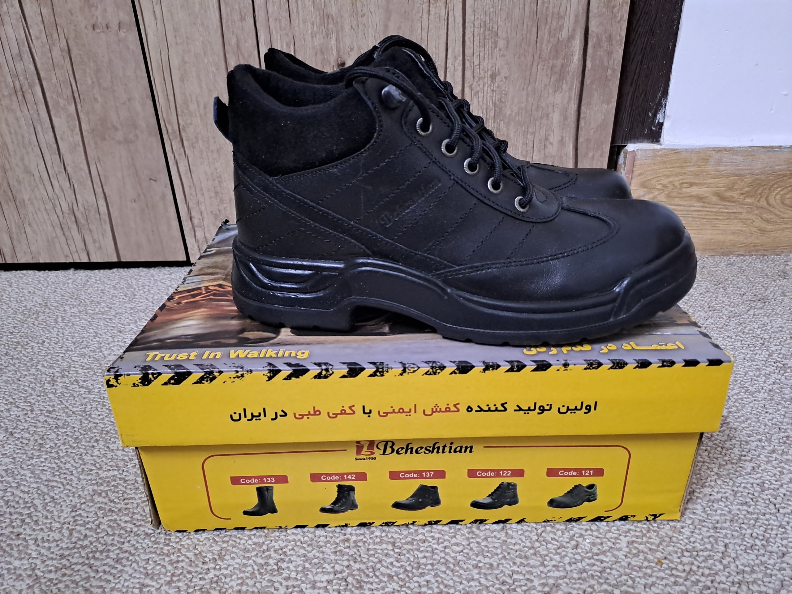 کفش ایمنی بهشتیان مدل الوند سایز 42 به همراه جعبه و کفی طبی.