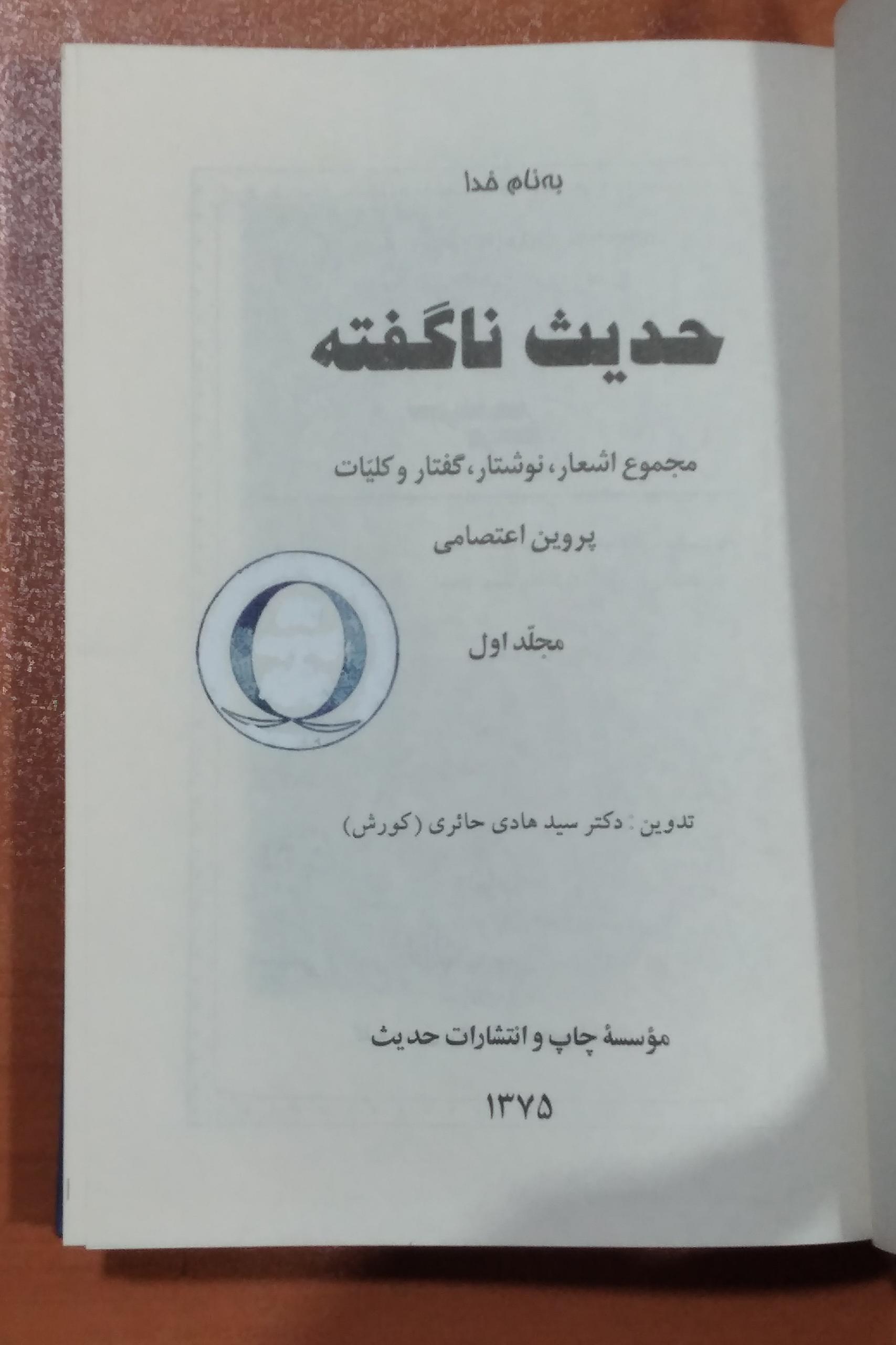 حدیث ناگفته _ جلد اول _ مجموع اشعار پروین اعتصامی
