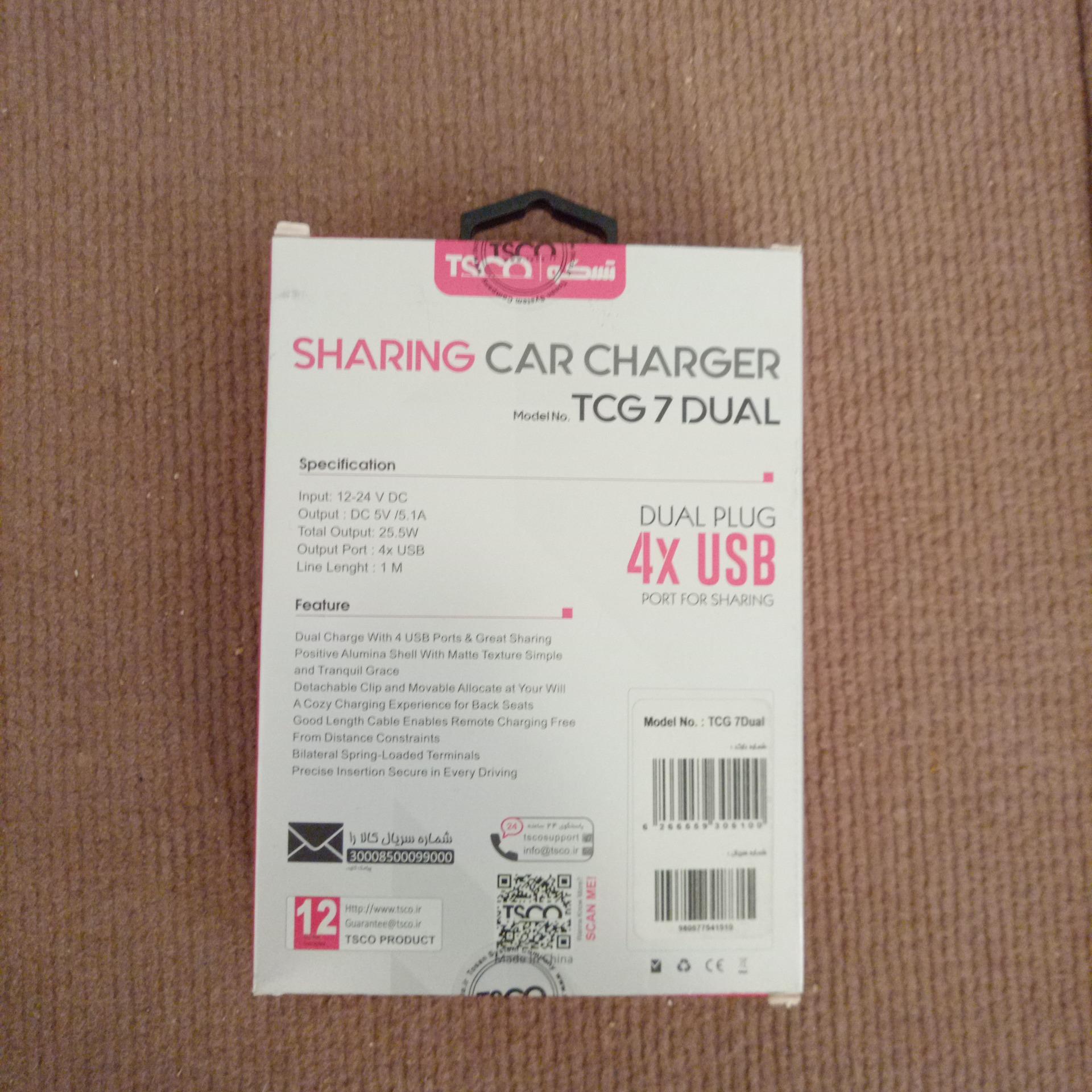 شارژر فندکی تسکو.دارای 4 خروجی با شدت جریان بیش از 5 آمپر.دو خروجی برا سرنشین های جلو و دو خروجی برا سرنشین های عقب.قسمت عقب طول سیم اش یک متر بوده و با کلیپس میتونه به پشتیه صندلی فیکس بشه.بسته بندی و جعبه شیک و کادویی.تست شده و نو.مرجوعی یا موارد مشابه ندارم.درب جعبه جهت انجام تست کالا باز شده.