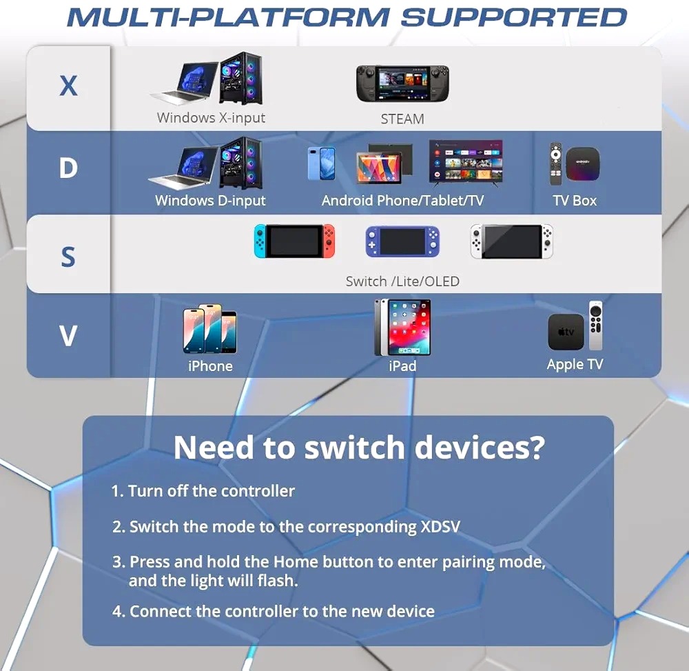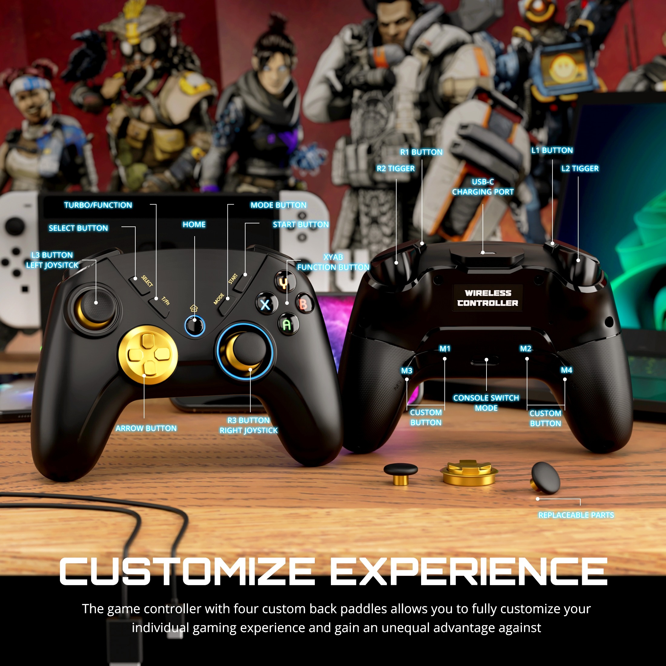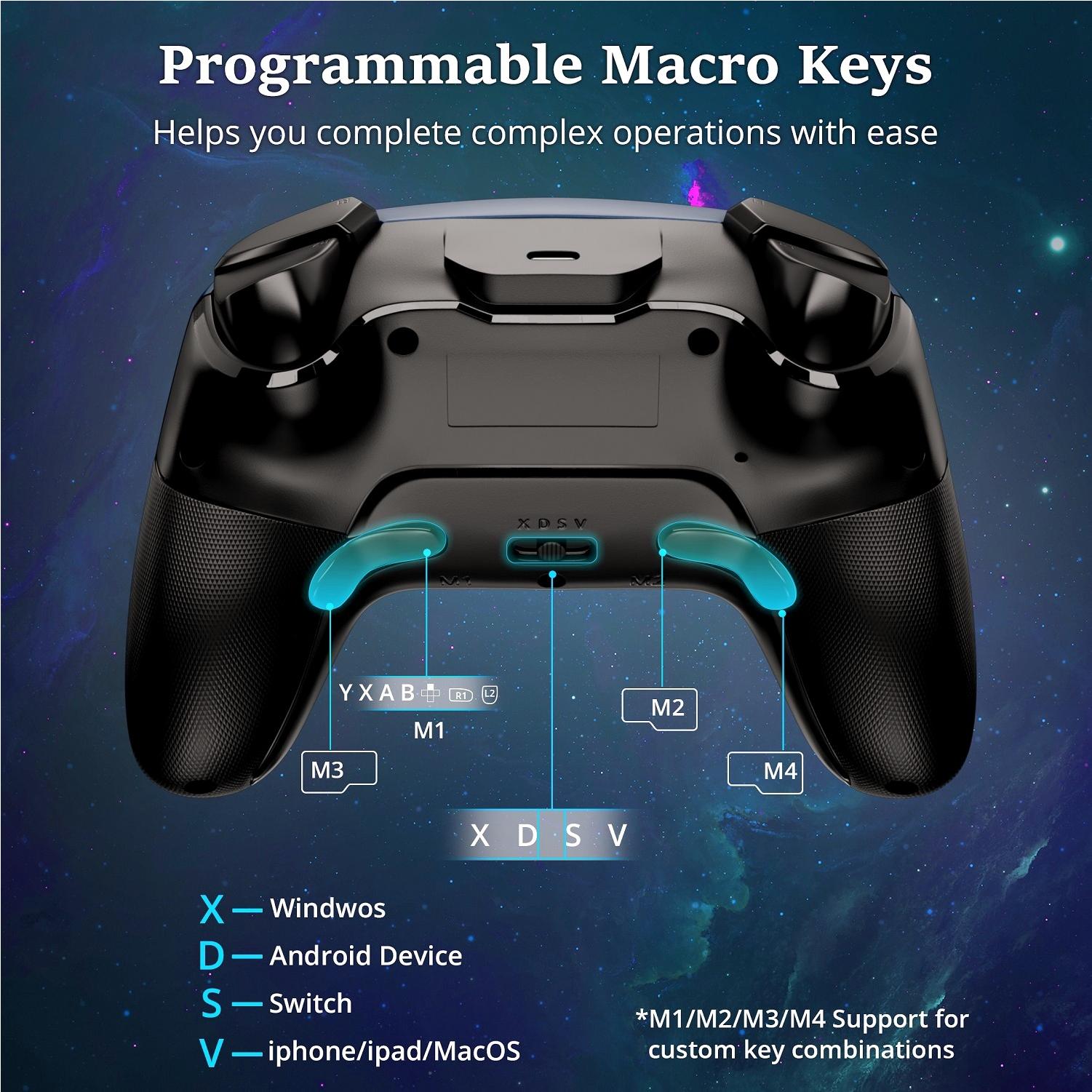این دسته بازی بیسیم قدرتمند برای بهبود تجربه بازی شما طراحی شده است. این دسته با Switch، کامپیوترهای شخصی ویندوز 7/8.1/10/11 و دستگاههای آیفون/اندروید سازگار است و دارای چهار دکمه قابل برنامهریزی در پشت جویاستیک است که به شما امکان میدهد ترکیب دکمهها