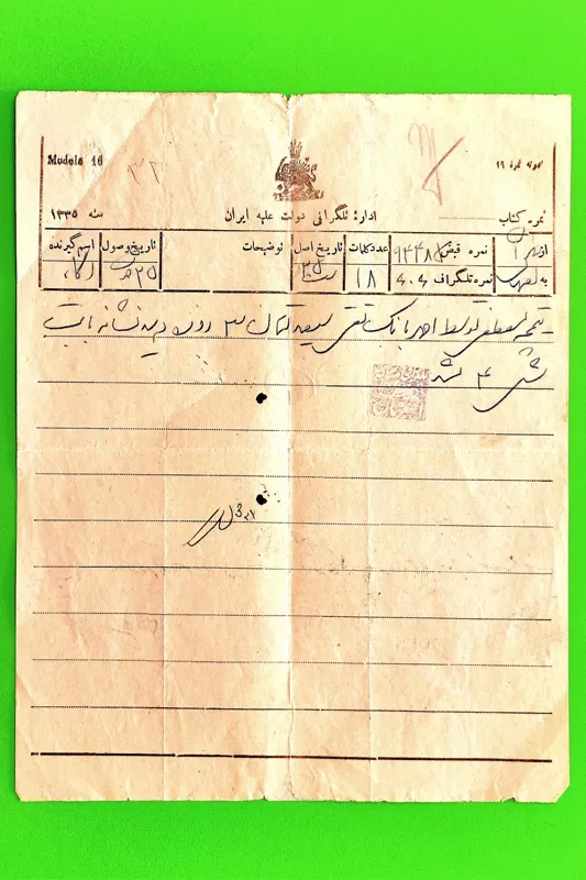 برگه قدیمی و ارزشمند تلگرافخانه مبارکه اصفهان 1295