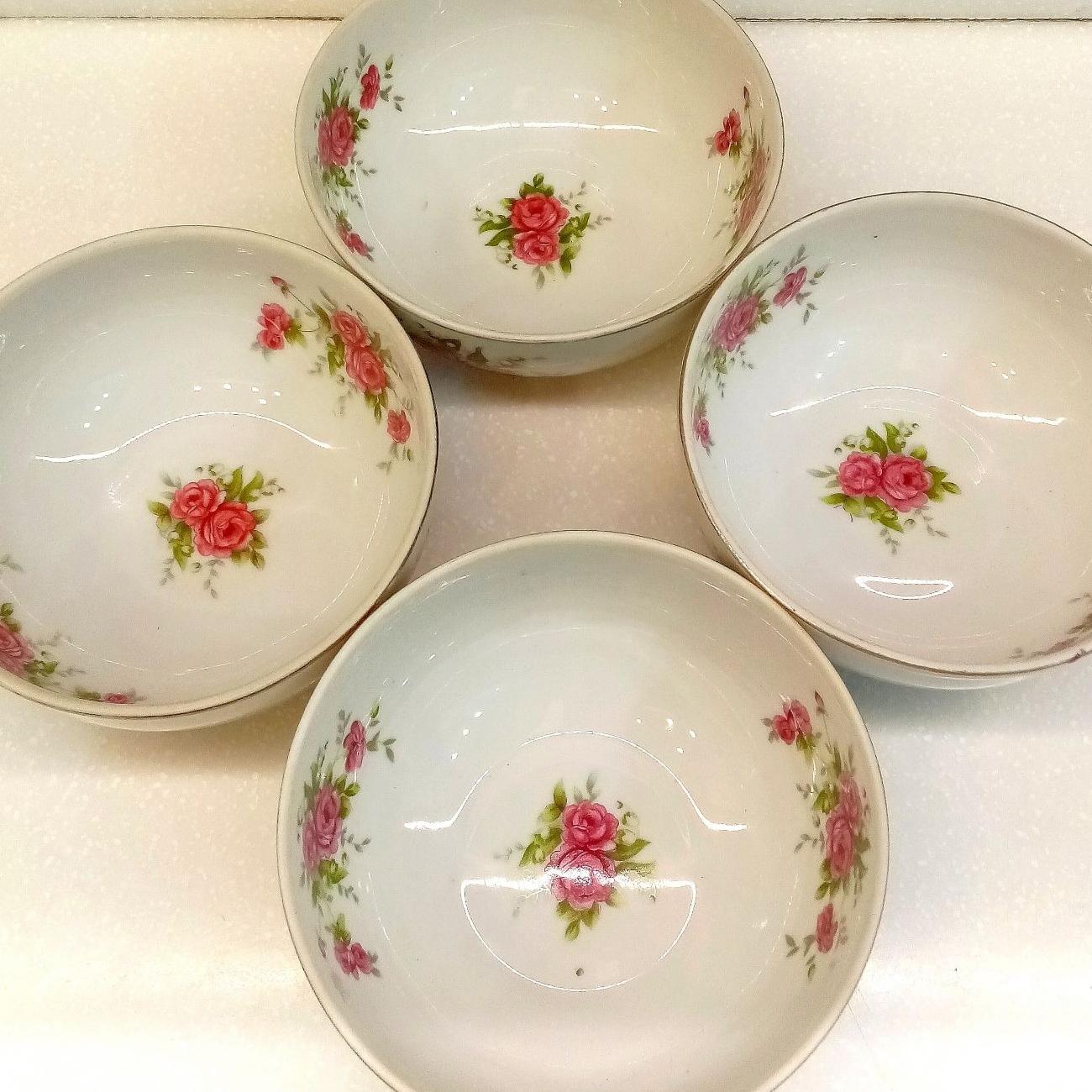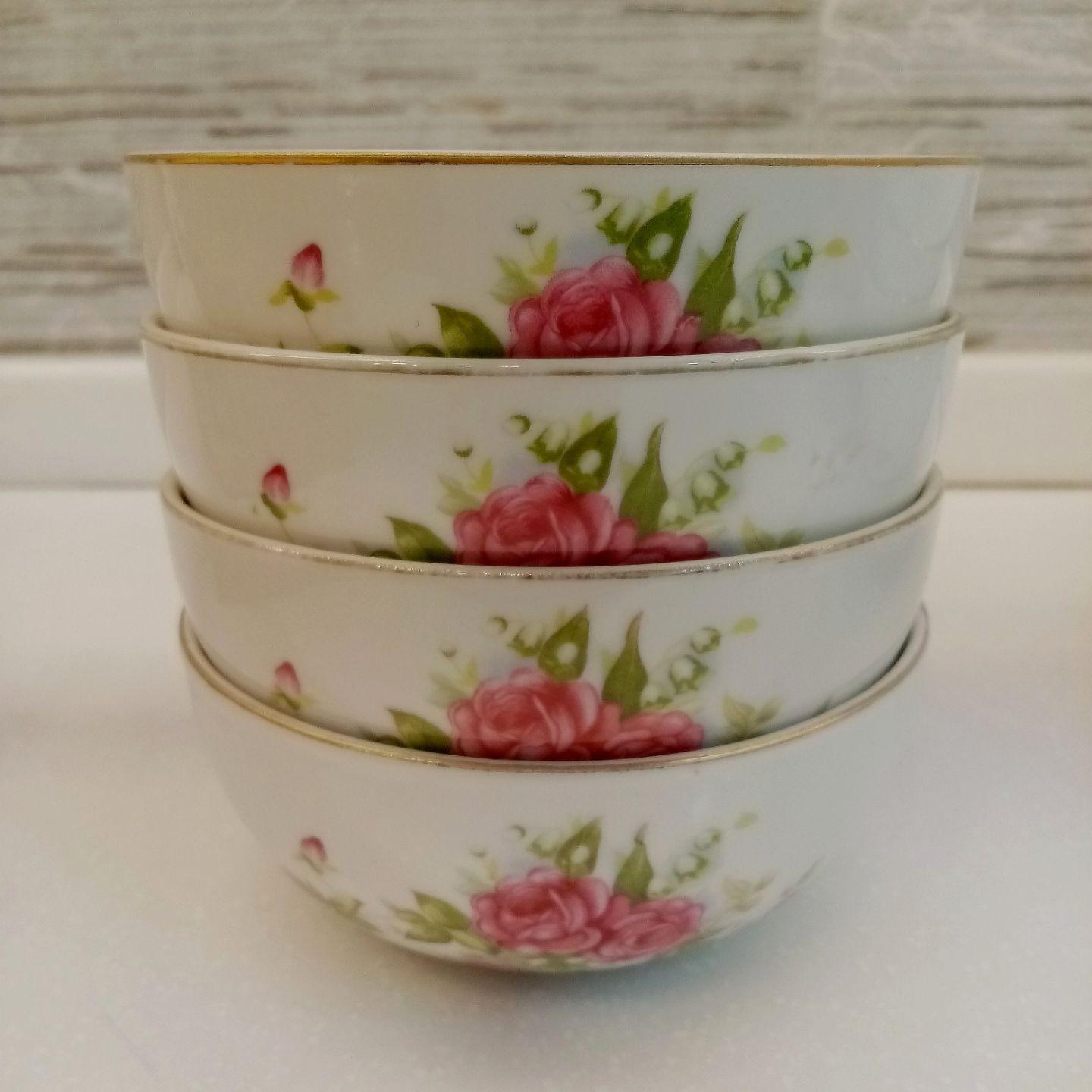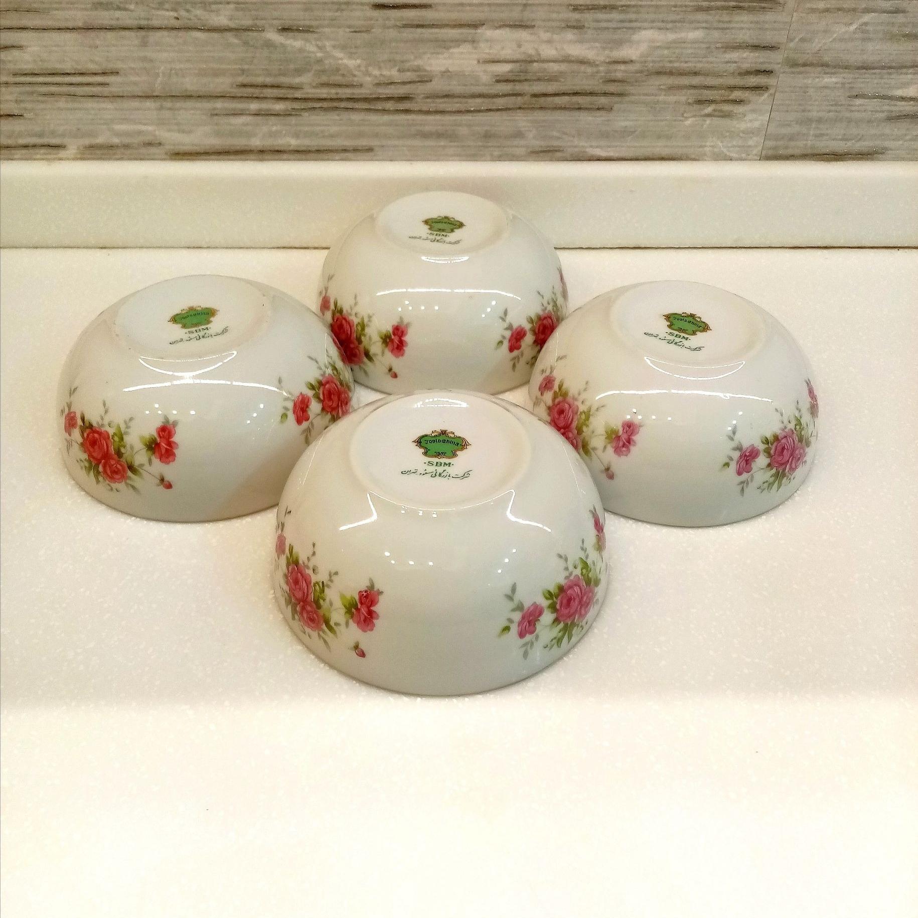 کاسه یا پیاله گلسرخی بی کعب فوق زیبای بازرگانی مسعود، sbm از دوره پهلوی. اندازه دهانه 13 سانتیمتر، قیمت درج شده برای 1عدد از 4عدد کاسه موجود میباشد.