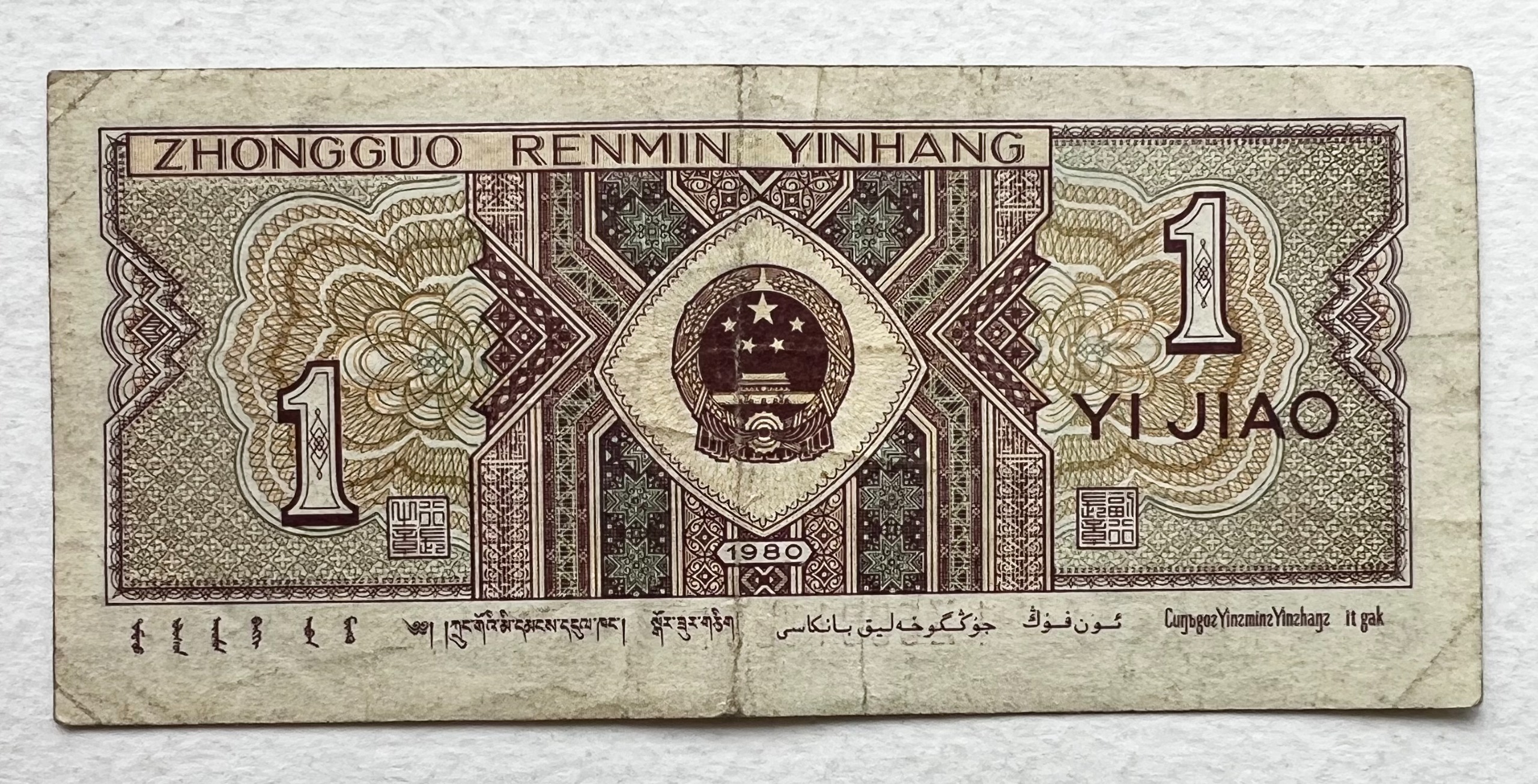 اسکناس کمیاب خارجی 1 جیاوو قدیم چین 1980 فی عالی