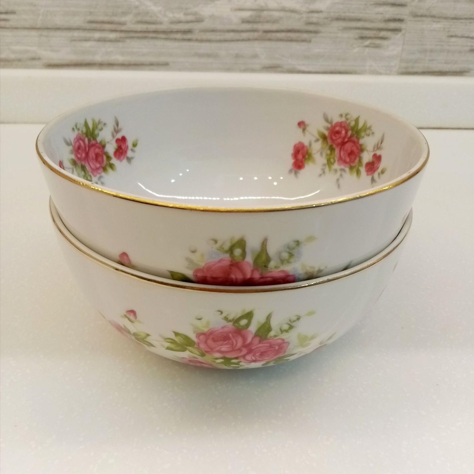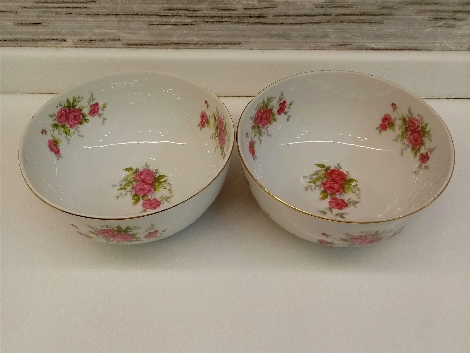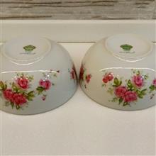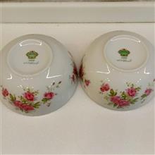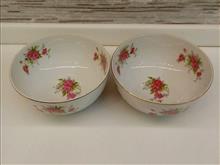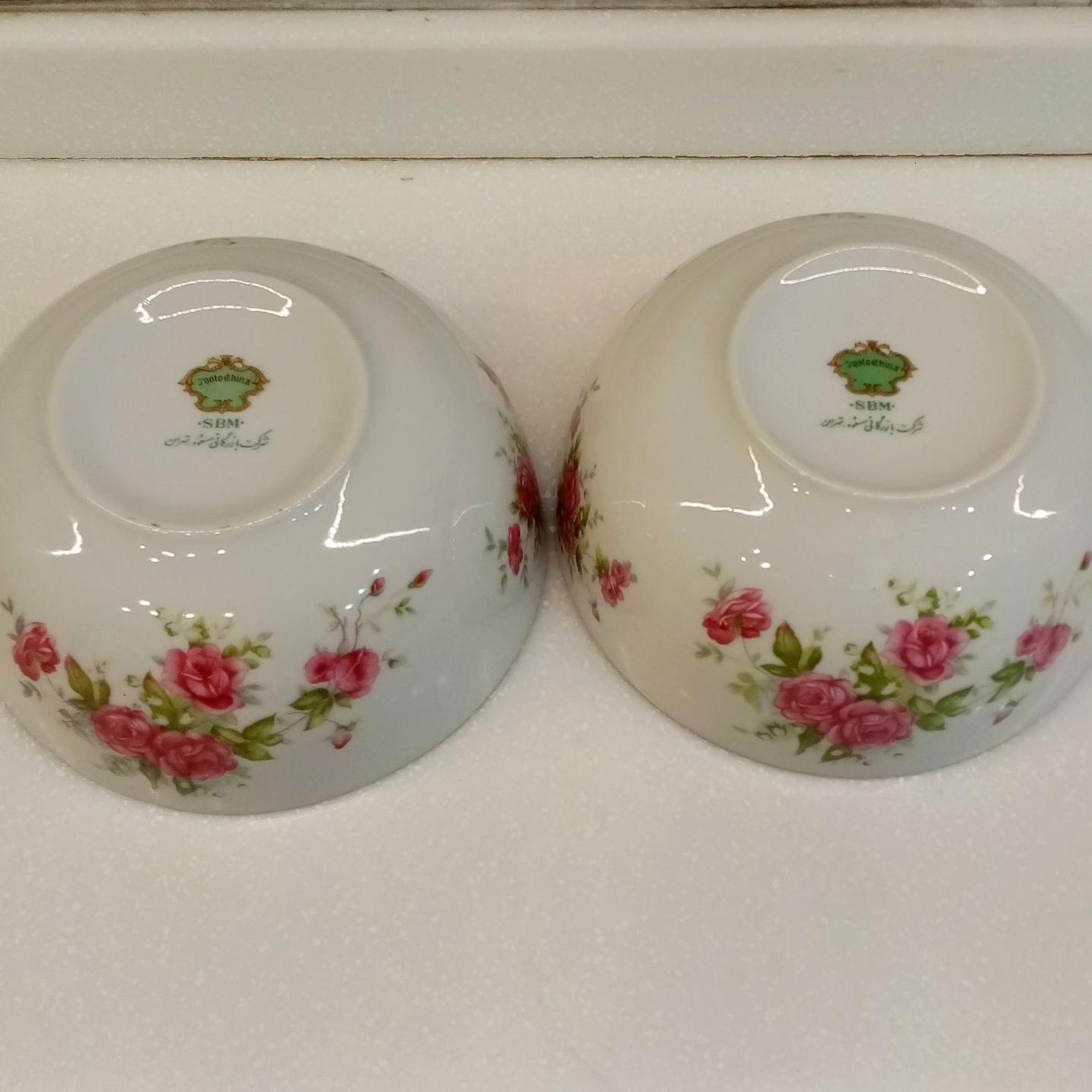 کاسه های گلسرخی بی کعب فوق زیبای بازرگانی مسعود، sbm از دوره پهلوی.اندازه دهانه 16 سانت(15/5 سانت) وقیمت درج شده برای 1 عدد از 2 عدد کاسه موجود میباشد.