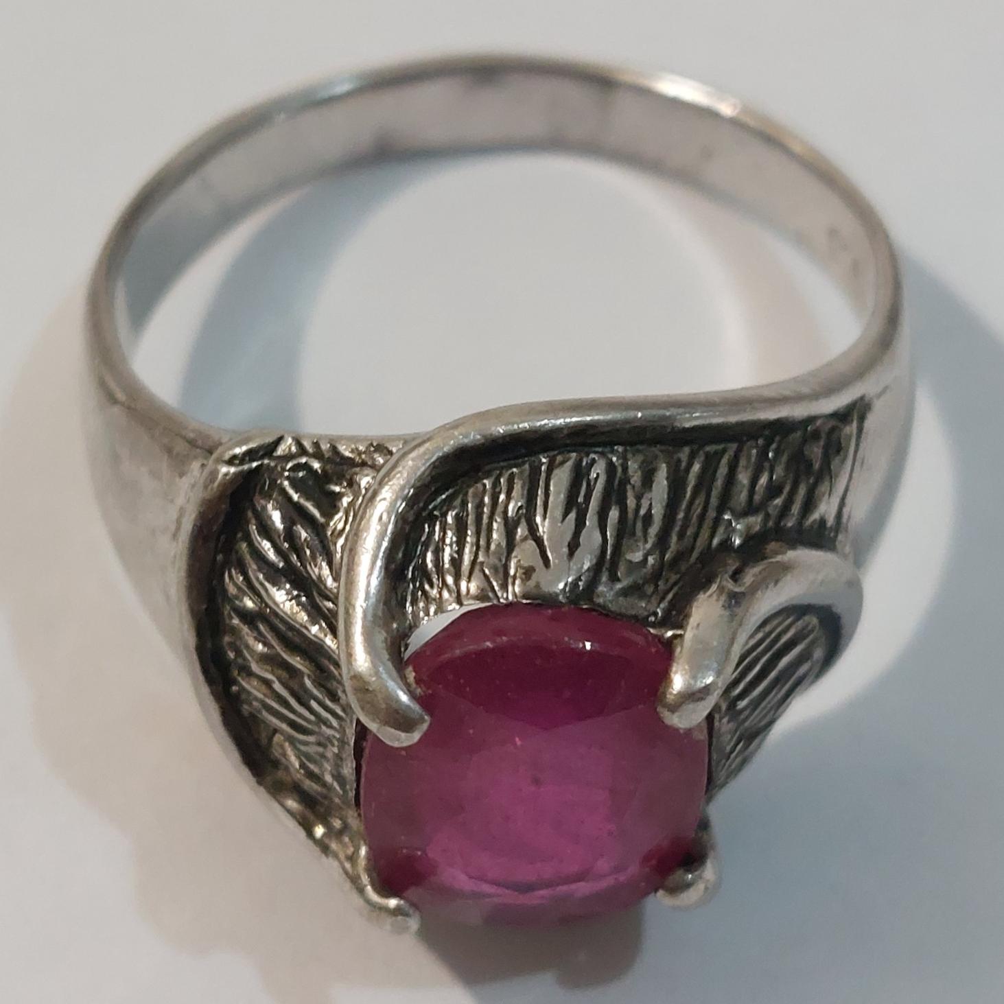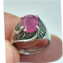 انگشتر نقره کلکسیونی با نگین یاقوت معدنی