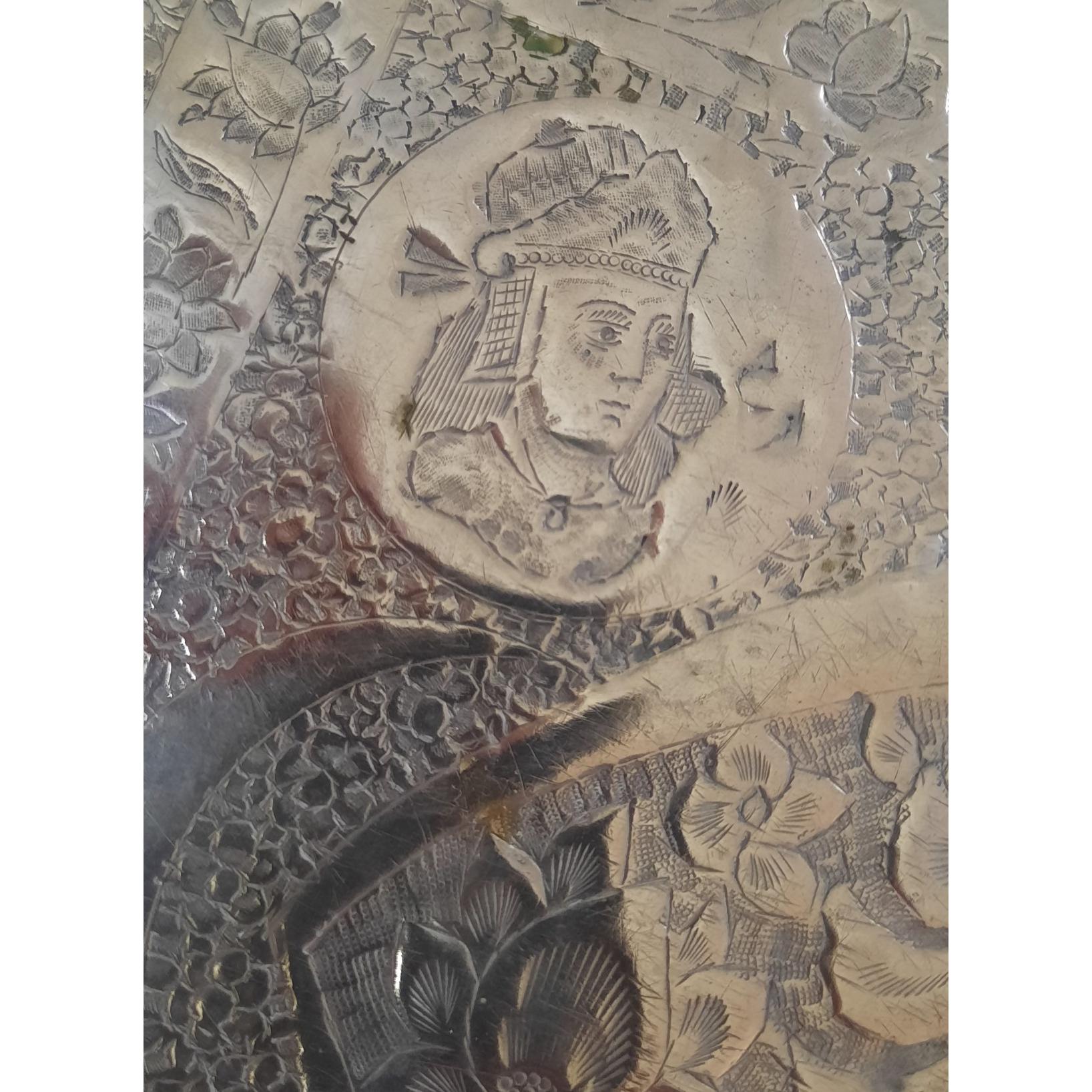 سینی قدیمی کار دست با نقاشیهای زیبا وابکاری نقره