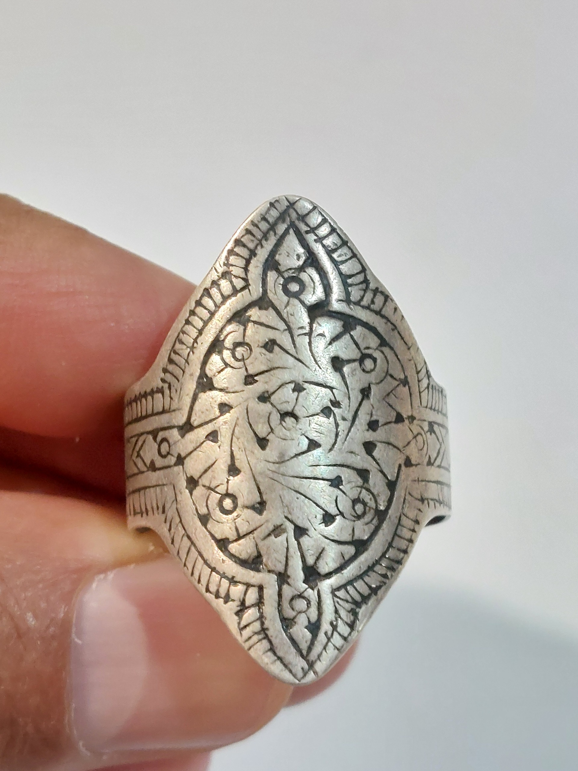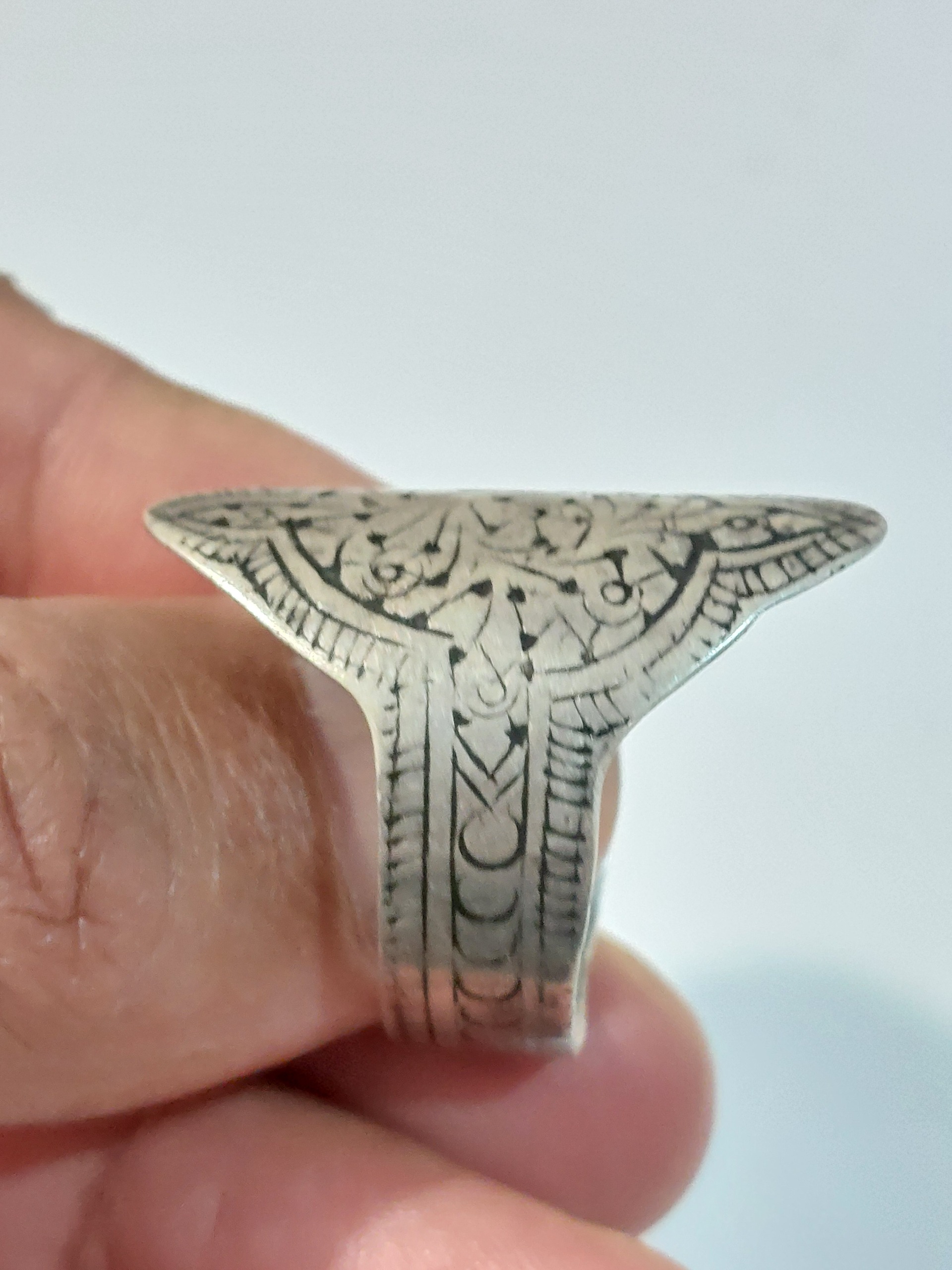 انگشتر نقره با هنر قلمزنی زیبا و بینظیر