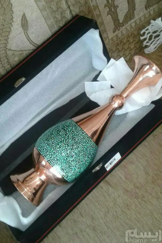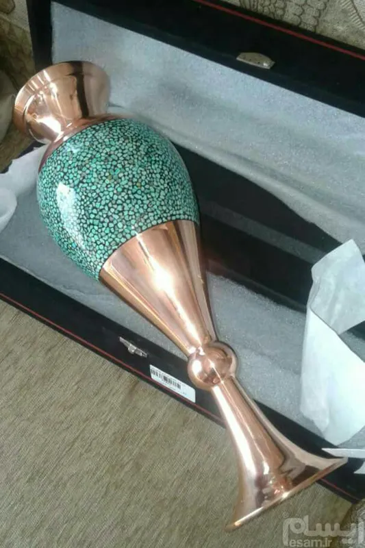 گلدان مسی 40 سانت ارتفاع ( سنگ کوبی اصل فیروزه)