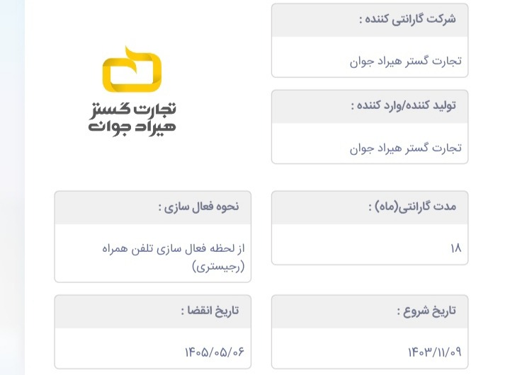 18 ماه گارانتی تا 1405/5/6