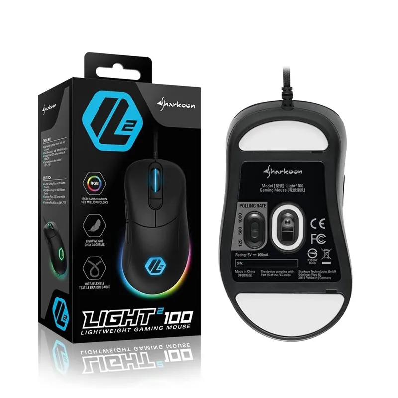 استفاده راحت : با وزن تنها 78 گرم ، Light2 100 مطابق با نام خود است . دارای طول عمر 20 میلیون کلیک . بدون تاخیر : نرخ نوسازی 1000 هرتزی که با دکمه ی زیر موس و نرم افزار قابل تنظیم است . پورت USB ماوس برای عملکرد بهتر و پایدار با روکش طلا آبکاری شده است . وزن سبک و طراحی ارگونومیک دست راست به هندلینگ فوقالعاده خوبی دست مییابد ، جایی که اقدامات درون بازی به معنای واقعی کلمه آسان است و مچهای تنگ متعلق به گذشته است . دو دکمه شست بزرگ و قابل لمس بدون در نظر گرفتن سبک گرفتن ترجیحی ، حمل راحت را تضمین می کند . آزادی حرکت نامحدود : برای حمل و نقل بهینه تر ، Light2 100 به سه پایه ماوس بزرگ ساخته شده از 100٪ PTFE مجهز شده است. یک کابل بسیار انعطاف پذیر با روکش پارچه نیز آزادی حرکت تقریبا نامحدود را تضمین می کند . نورپردازی شیک : با لوگوی روشن و چرخ اسکرول و همچنین نورپردازی ظریف در قسمت پایینی پشت ، Light2 100 همچنین برجسته های بصری شیک را به نمایش می گذارد . البته رنگ نور را می توان با نرم افزار بازی قابل دانلود از کل طیف RGB به صورت آزاد انتخاب کرد و با مجموعه ای از افکت ها ارائه داد . دقت برای هر هدف : حسگر PixArt 3325 که در داخل Light2 100 ساخته شده است با حداکثر 5000 DPI در هفت سطح قابل تنظیم ، دقت را برای هر برنامه ای ارائه می دهد . دستورات متداول را می توان به راحتی با حداکثر شش کلید قابل برنامه ریزی با استفاده از نرم افزار بازی اختصاص داد . بهطور جداگانه به لطف نرمافزار بازی : چه Marko ضبط کند ، چه تنظیم نور RGB یا تنظیم سطوح جداگانه DPI ، نرمافزار بازی قابل دانلود عملکردهای ضروری و کاملاً مرتب شده برای پیکربندی فردی Light2 100 را ارائه میکند . یا حق
