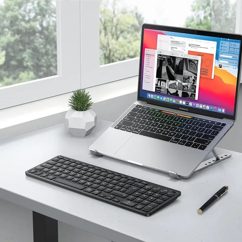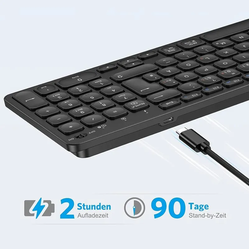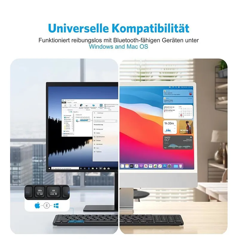 سازگاری بالا : این صفحه کلید بلوتوث برای همه مدلهای دارای سیستم عامل ویندوز/مک مناسب است و میتوان از آن در رایانههای شخصی/لپتاپ/مکبوک پرو/مکبوک ایر/آیمک/آیمک پرو و غیره استفاده کرد . توجه : نماد نارنجی فقط در سیستم عامل مک موجود است . کیبورد بلوتوث قابل شارژ : مجهز به باتری لیتیومی قدرتمند 300 میلی آمپری که 2 تا 3 ساعت شارژ می شود . حالت شارژ کامل می تواند تا 120 ساعت دوام داشته باشد و زمان آماده به کار نظری می تواند تا 360 ساعت باشد که برای حفاظت از محیط زیست مناسب است . راحت و سریع : این صفحه کلید بلوتوث مک می تواند به طور خودکار سیستم شما (ویندوز یا MacOS) را شناسایی کند و بلوتوث پس از هر بار شروع به طور خودکار به دستگاه متصل می شود . هر کلیدی را فشار دهید تا صفحه کلید فعال شود طرز کار عالی : این صفحه کلید بی سیم به خوبی ساخته شده است و از مواد عالی ABS استفاده می کند تا این صفحه کلید قابل حمل و سبک (تقریباً 480 گرم)، قوی و بادوام باشد . بهترین انتخاب برای کار، مطالعه و اوقات فراغت است . بسیار لمسی : طراحی مقعر و محدب درب کلید ارگونومیک است . طراحی منحصر به فرد پای قیچی فرمان ورودی را تقریباً بدون تأخیر باز می گرداند و در عین حال باعث کاهش قابل توجه صدای کوبه ای می شود که برای استفاده اداری و روزمره مناسب است . یا حق
