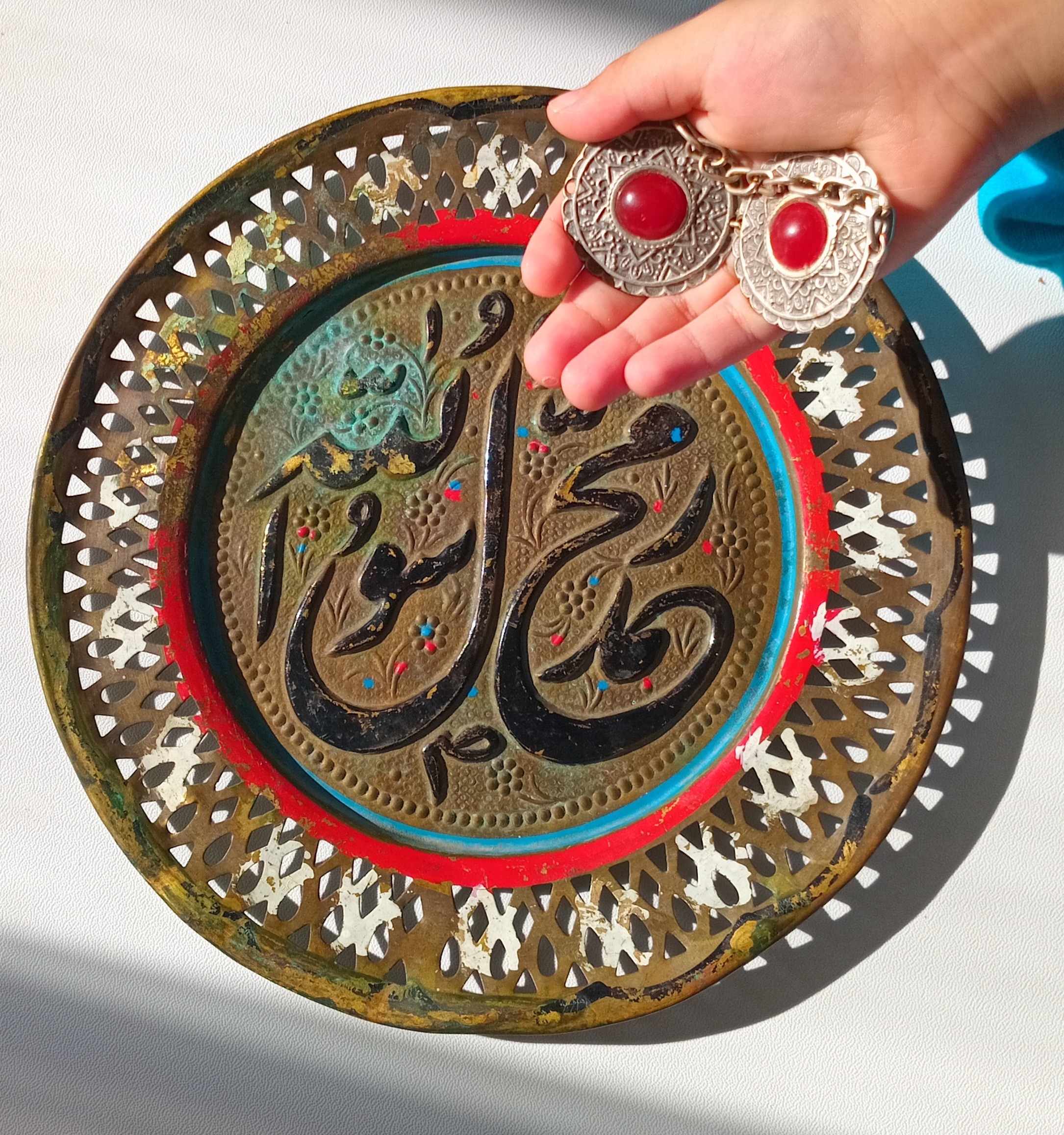 یک عدد دیوارکوب برنجی قدمت دار زیبا مزین به نام محمد رسول الله (ص)