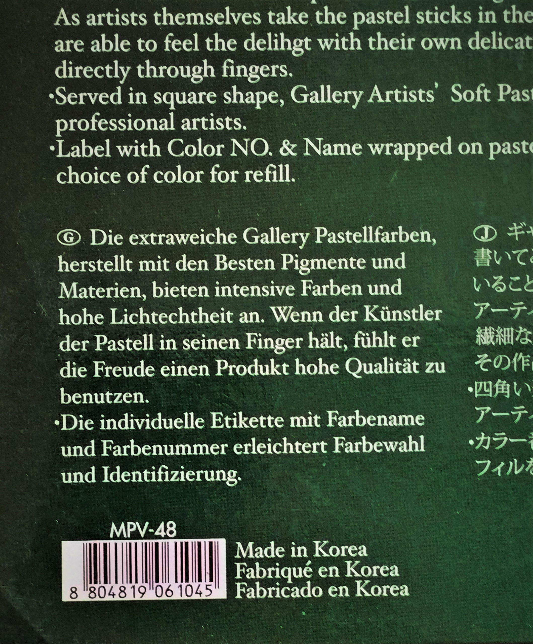 در بازار و اغلب فروشگاه همین پاستل را با ساخت چین به قیمت 1.5 میلیون تومان میفروشند. این پاستل گالری اصل (سری اول/ اورجینال) بوده و پشت مقوا ساخت کره جنوبی نوشته شده است.