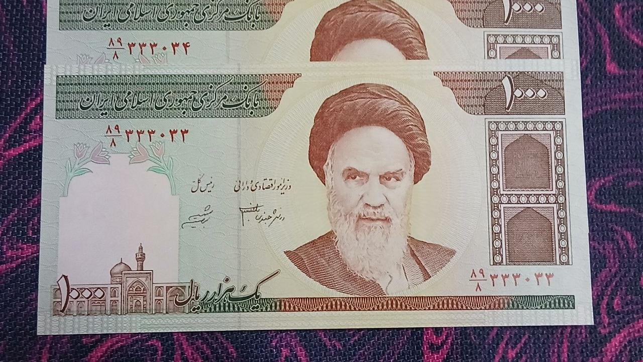 توجه:اسکناس با شماره سریال333033و ارور نخ جابجا وبا امضا دانش جعفری-شیبانی وتصویر وفیلیگران امام