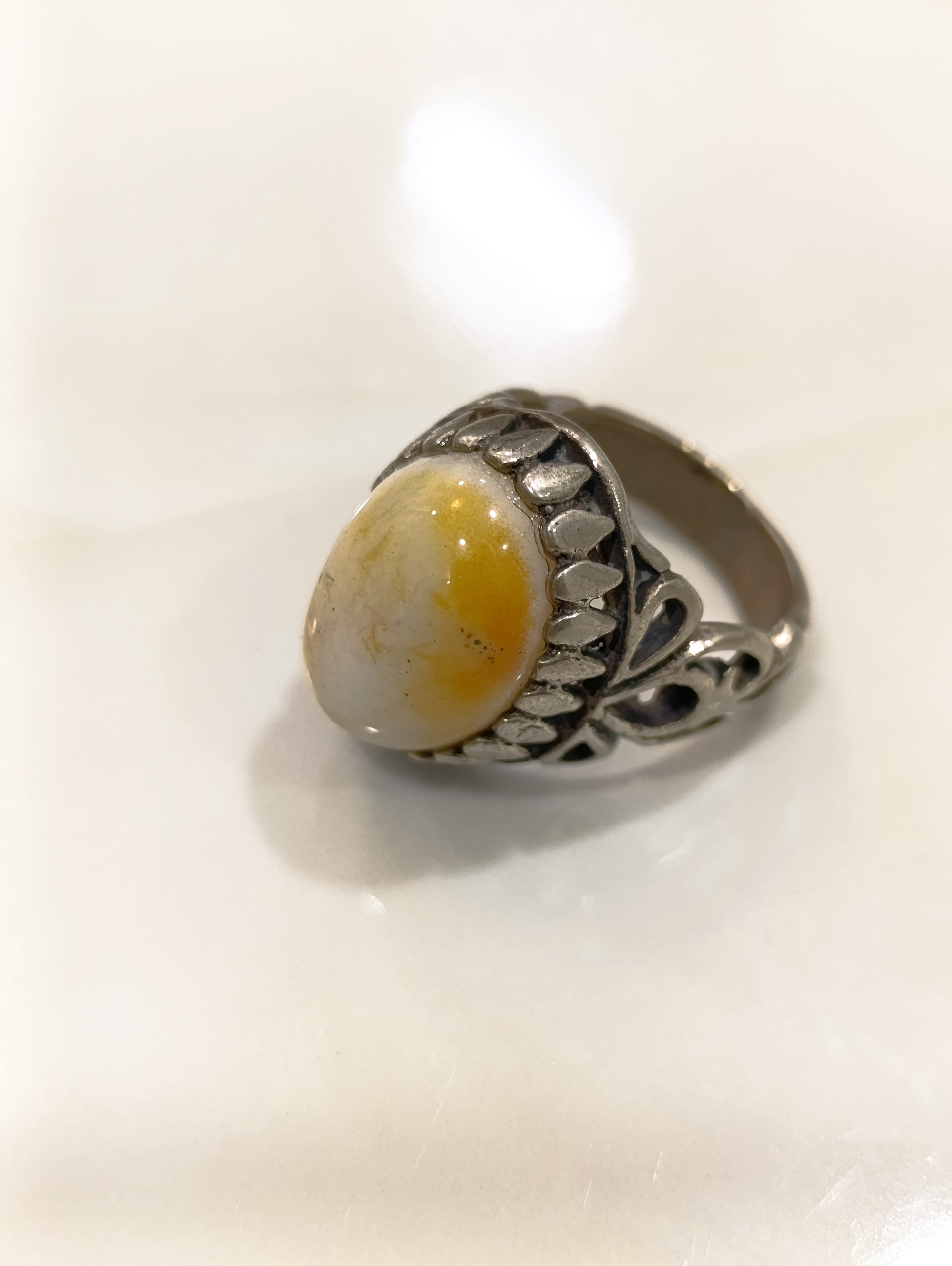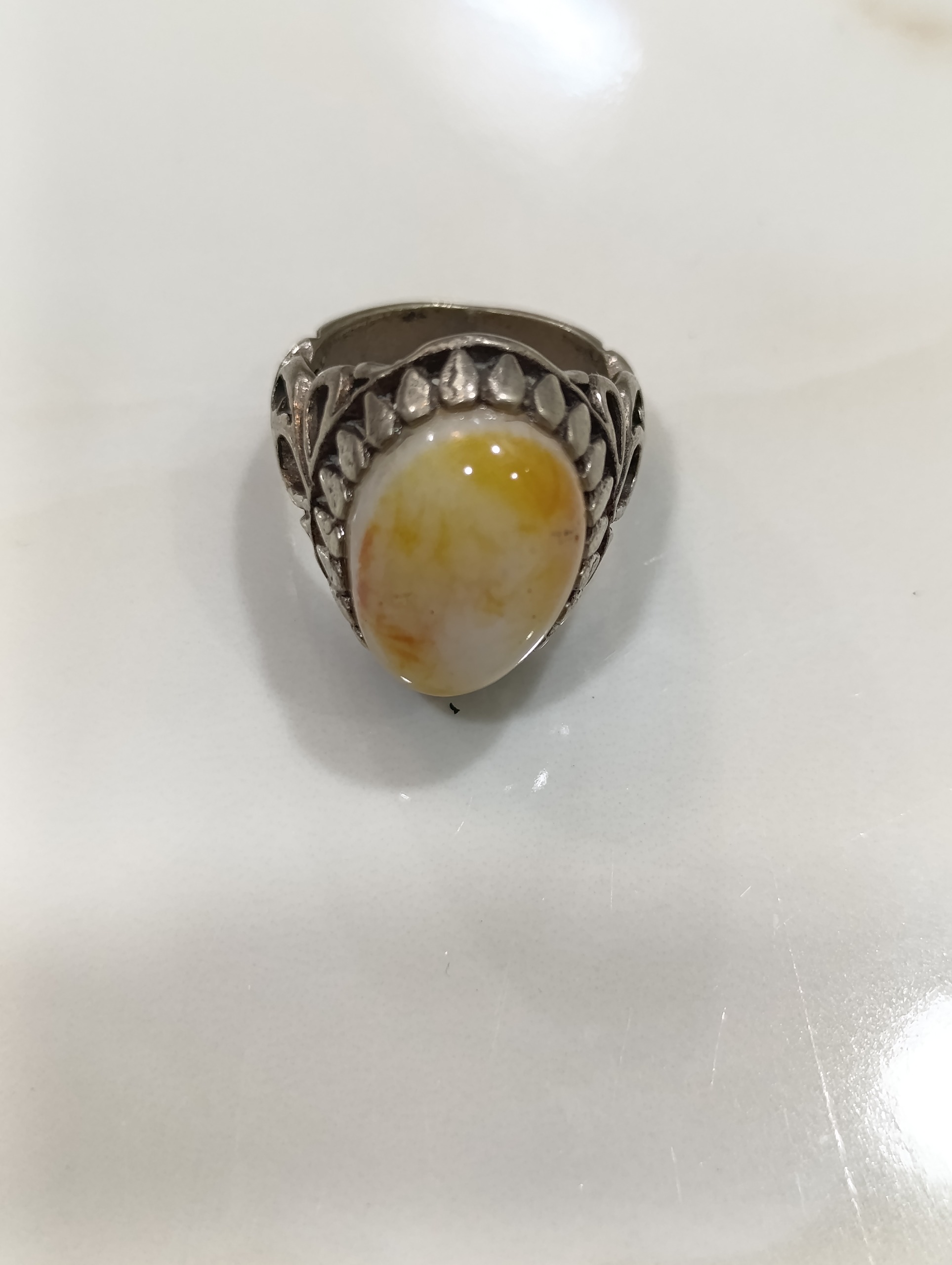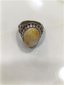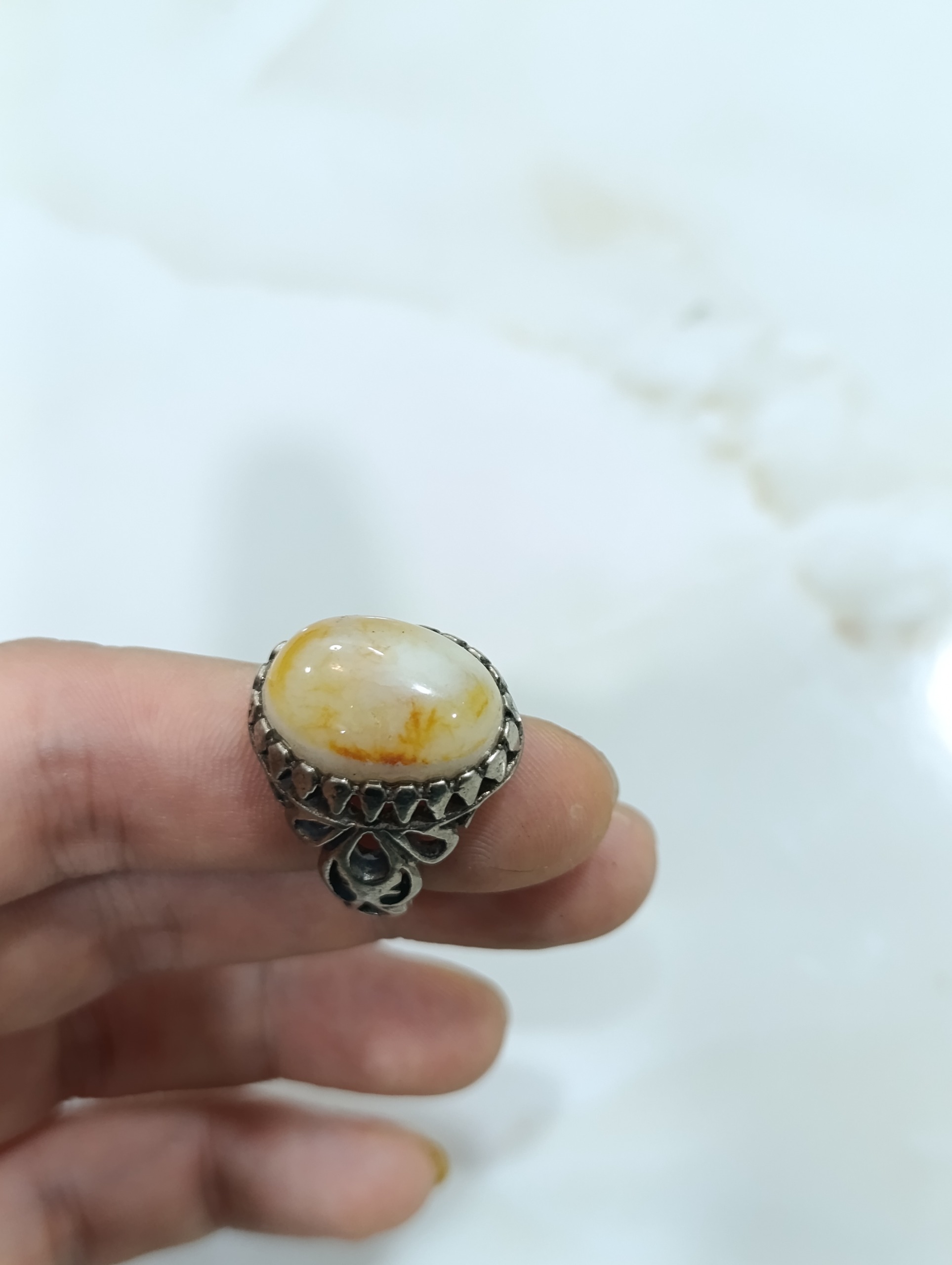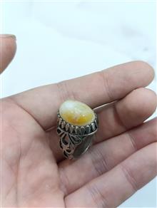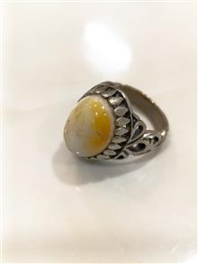 انگشتر عقیق رنگ بسیارزیبای شیری و بارگه های عجیب