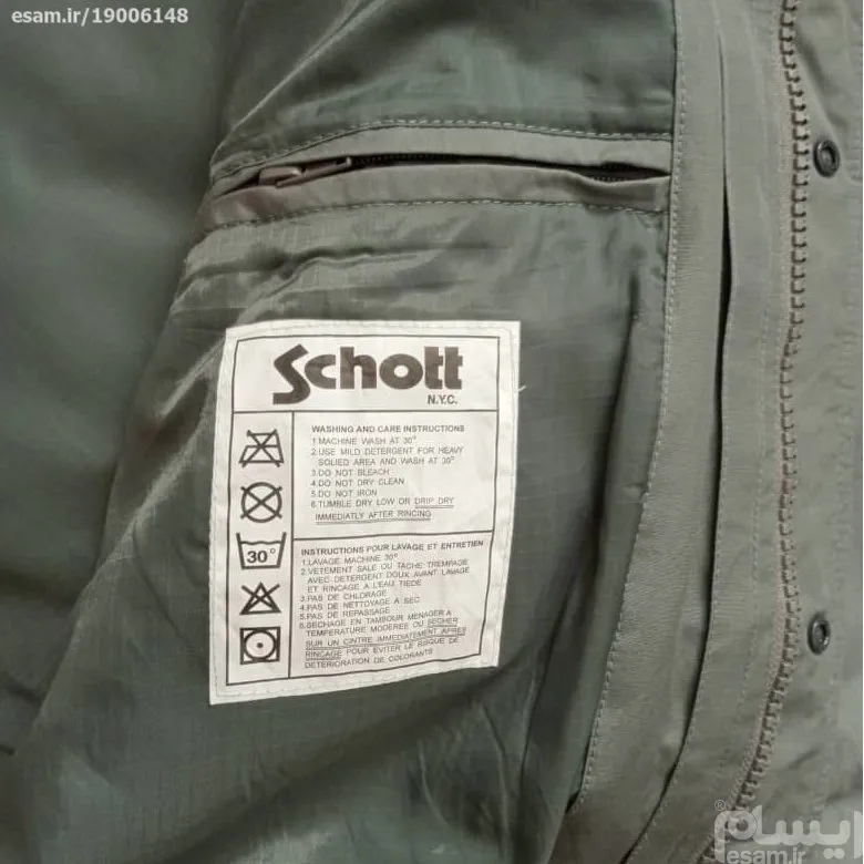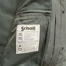 کاپشن برند معروف schott امریکا که در حال حاضر تولید کننده کاپشن های چرمی است.دفتر مرکزی این شرکت در امریکا و در شهر نیویورک است و روی این کاپشن  N.Y.Cبه معنی نیویورک سیتی حک شده و دارای شماره سریال  تولید می باشد.این کاپشن نو  می باشد و 15 سال پیش خریداری شده و آنتیک ای واقعی است.با سیل تولید و هجوم کالاهای چینی به امریکا شاید نمونه این کاپشن را در امریکا هم به سختی بتوان یافت.این کاپشن دارای زیپ در زیر بغل ها برای تهویه بهتر هوا می باشد و همچنین یک کلاه کوچک در یقه برای موارد بارندگی.