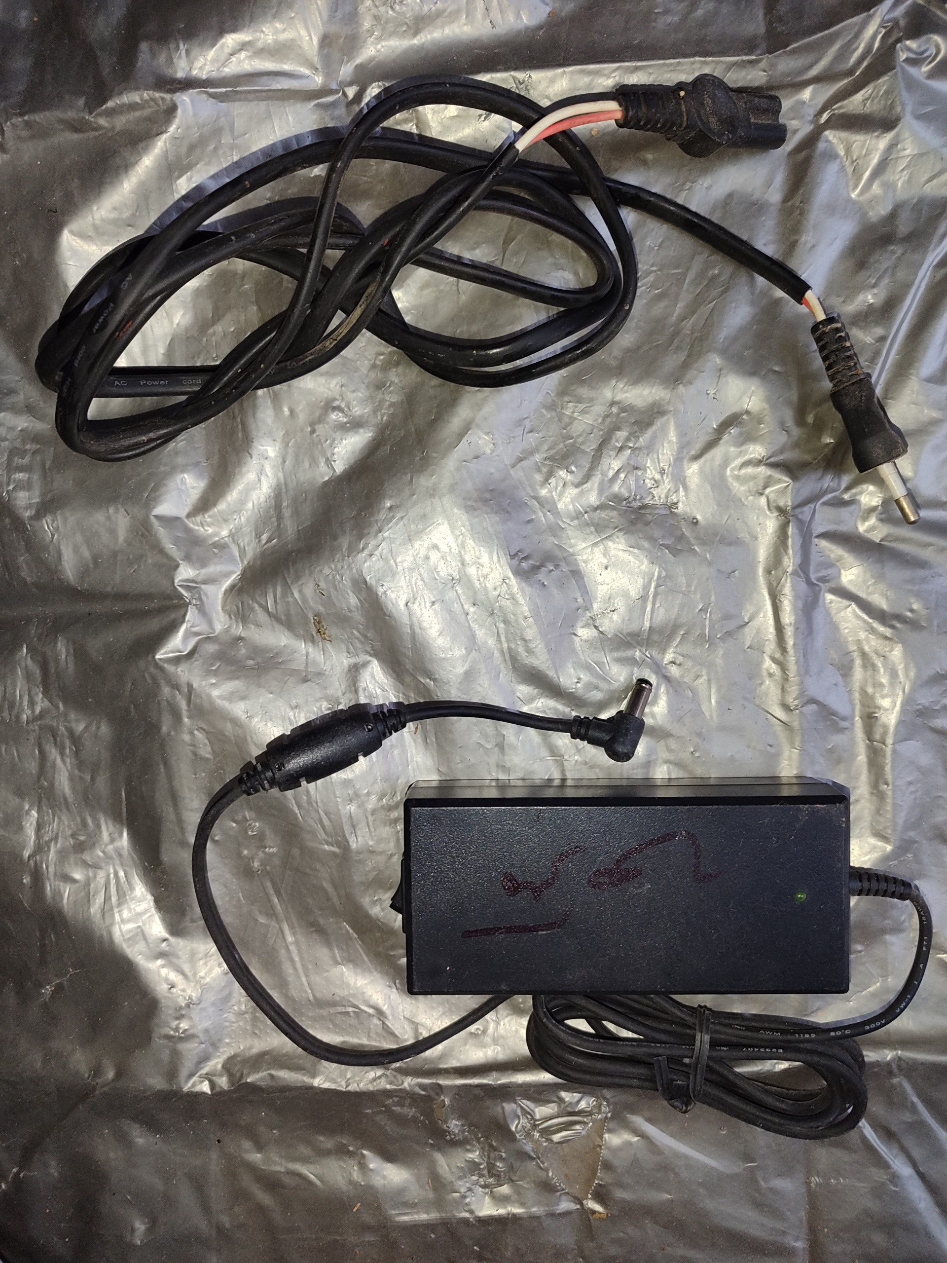همراه باسیم برق فابریکی.مقداری ازروکش سیم برق بازشده که ربطی به سیم های داخلی وکارکردترانس ندارد..