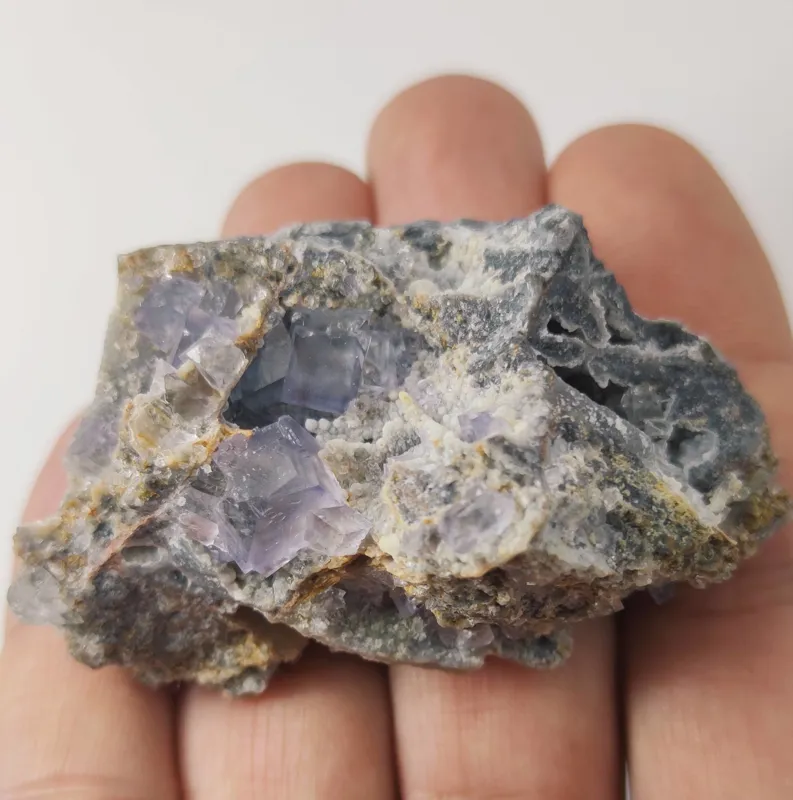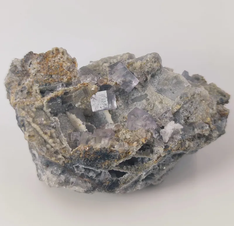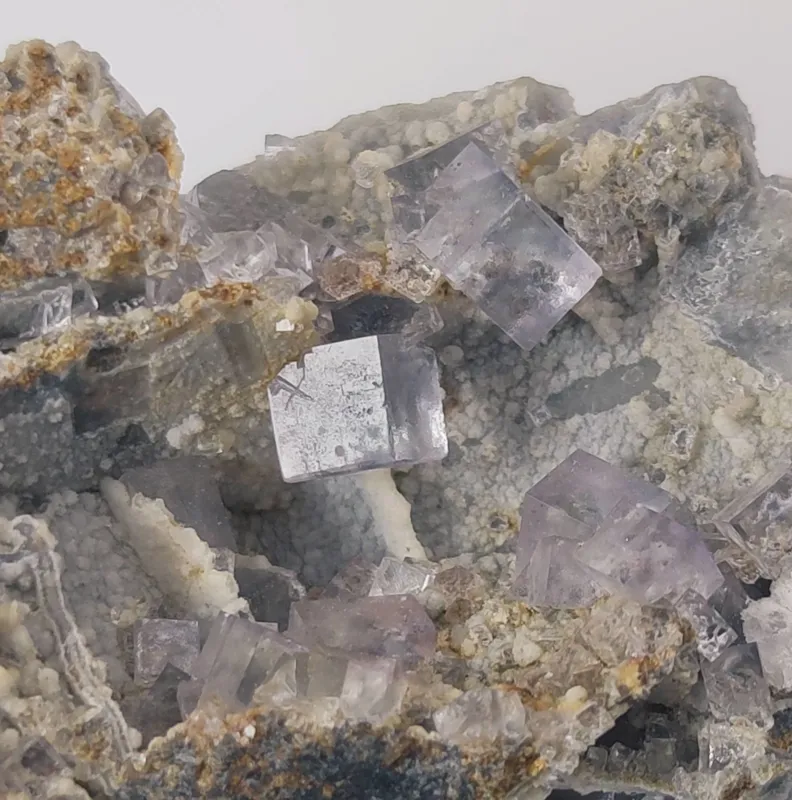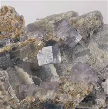 بلور های سالم فلوریت یا فلورین کوبیک معدنی در بستر
