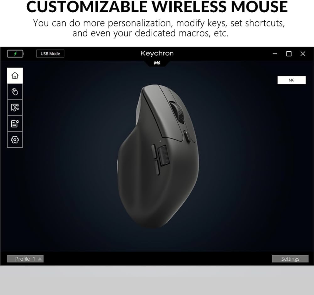ماوس اپتیکال گیمینگ بیسیم Keychron M6، سه حالته 2.4 گیگاهرتز/بلوتوث 5.1/سیمی، حسگر PixArt 3395، 26000 DPI، دکمه ماکرو قابل برنامهریزی سبک و ارگونومیک برای ویندوز/مک - مشکی