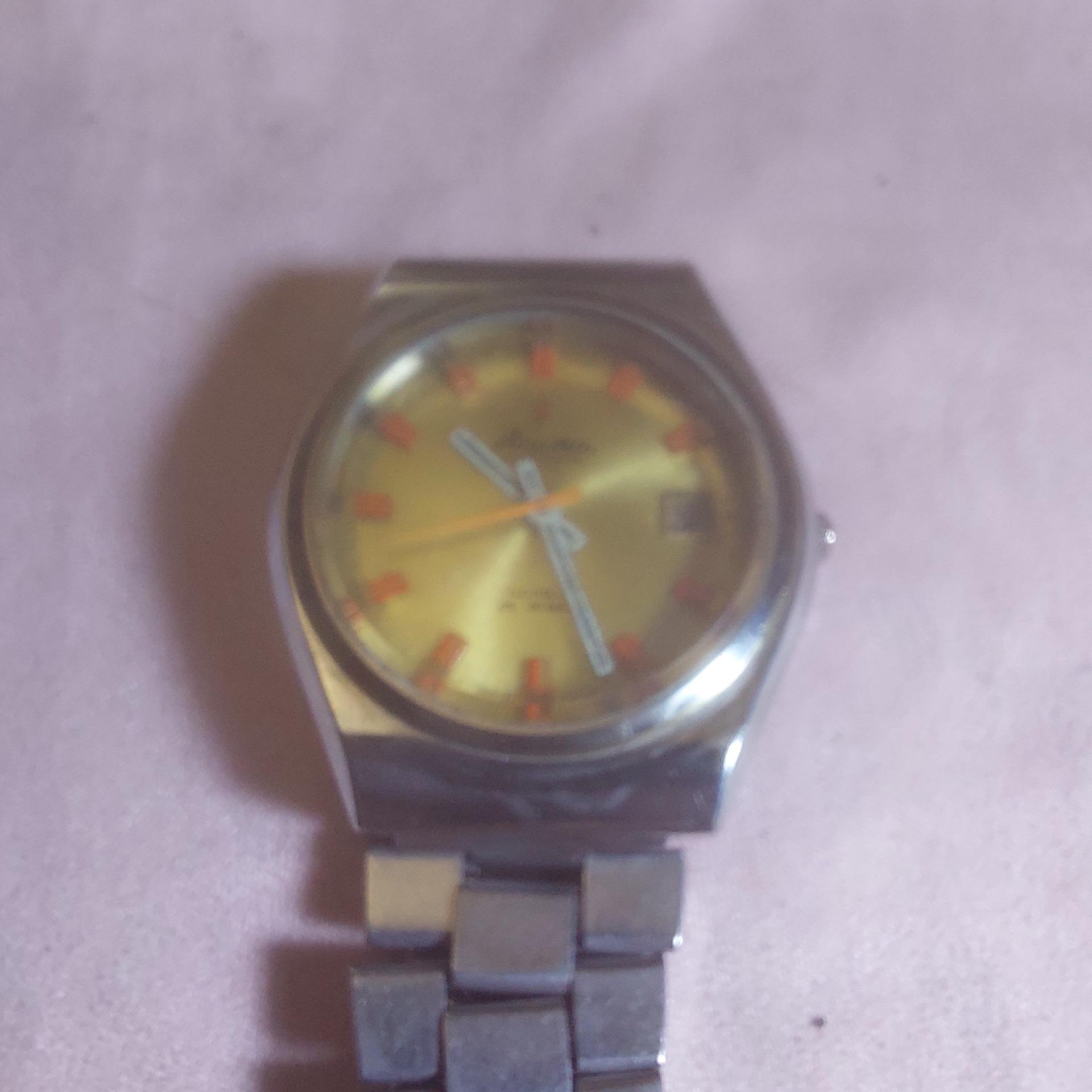 سلام دوستان ساعت مچی اتومات آروما در حد نو و آکبند با موتور سالم اصل سویس و اورجینال اصل، هیچ قطعه ای عوض نشده از اول سالم بوده بنده از مغازه ورثه یک ساعت ساز مرحوم خرید کردم به شرط اصل اصل، کارکردش عالیه حتی بندش اورجیناله به دلیل حساسیت کالا عودت نداریم.