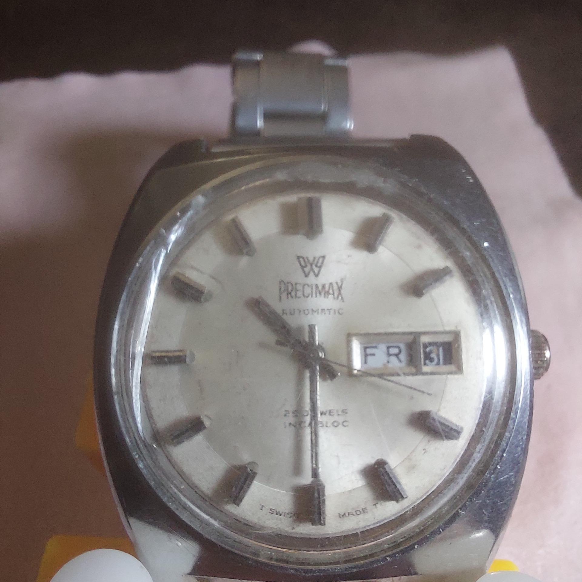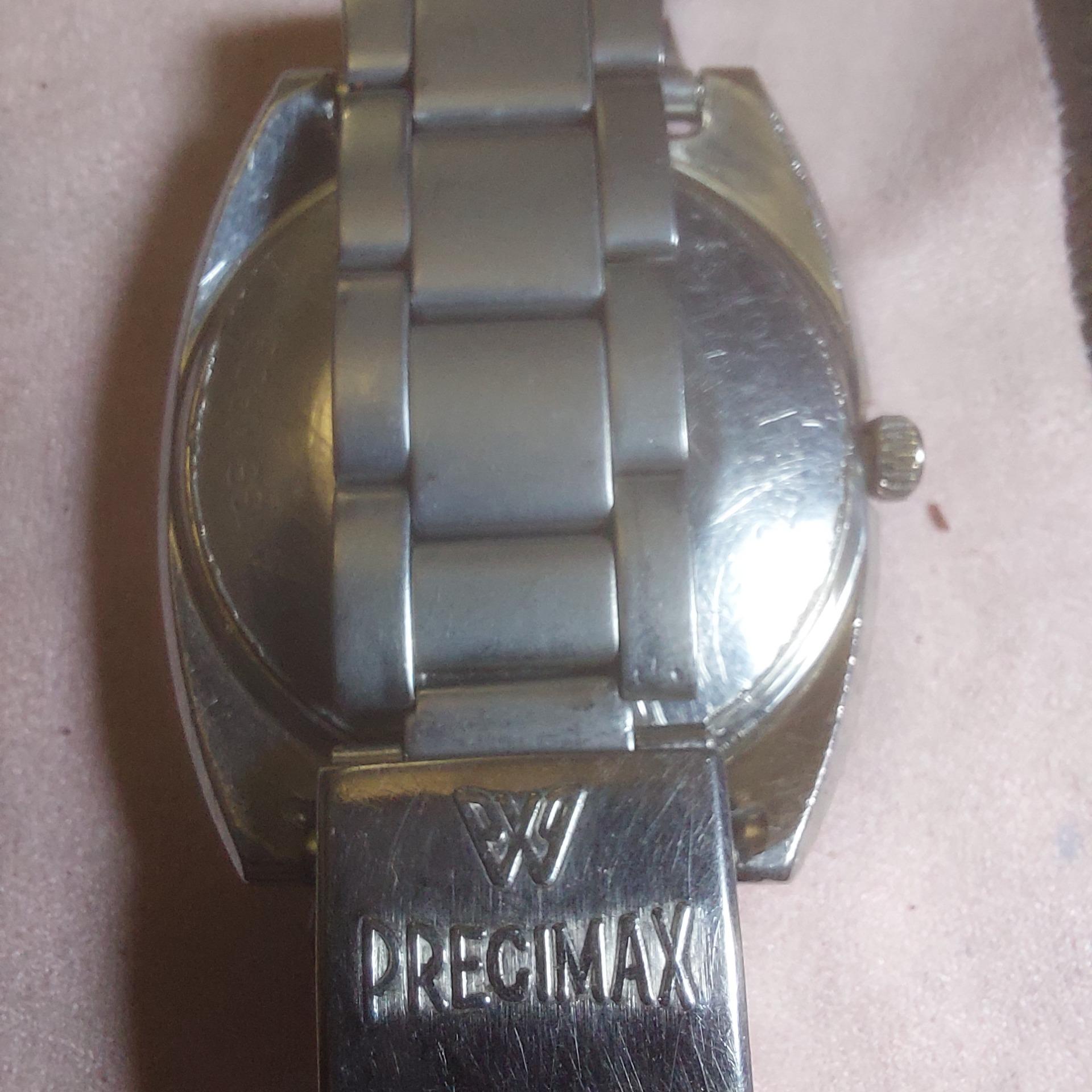 سلام دوستان ساعت مچی اتومات پریسیمکس (PRECIMAX) سویسی با موتور سالم اصل سویس فورتیسی و اورجینال اصل ، هیچ قطعه ای عوض نشده از اول سالم بوده بنده از مغازه ورثه یک ساعت ساز مرحوم خرید کردم به شرط اصل اصل، کارکردش عالیه، دلیل حساسیت کالا عودت نداریم. این ساعت دیدن داره بینظریه و کلکسیونی