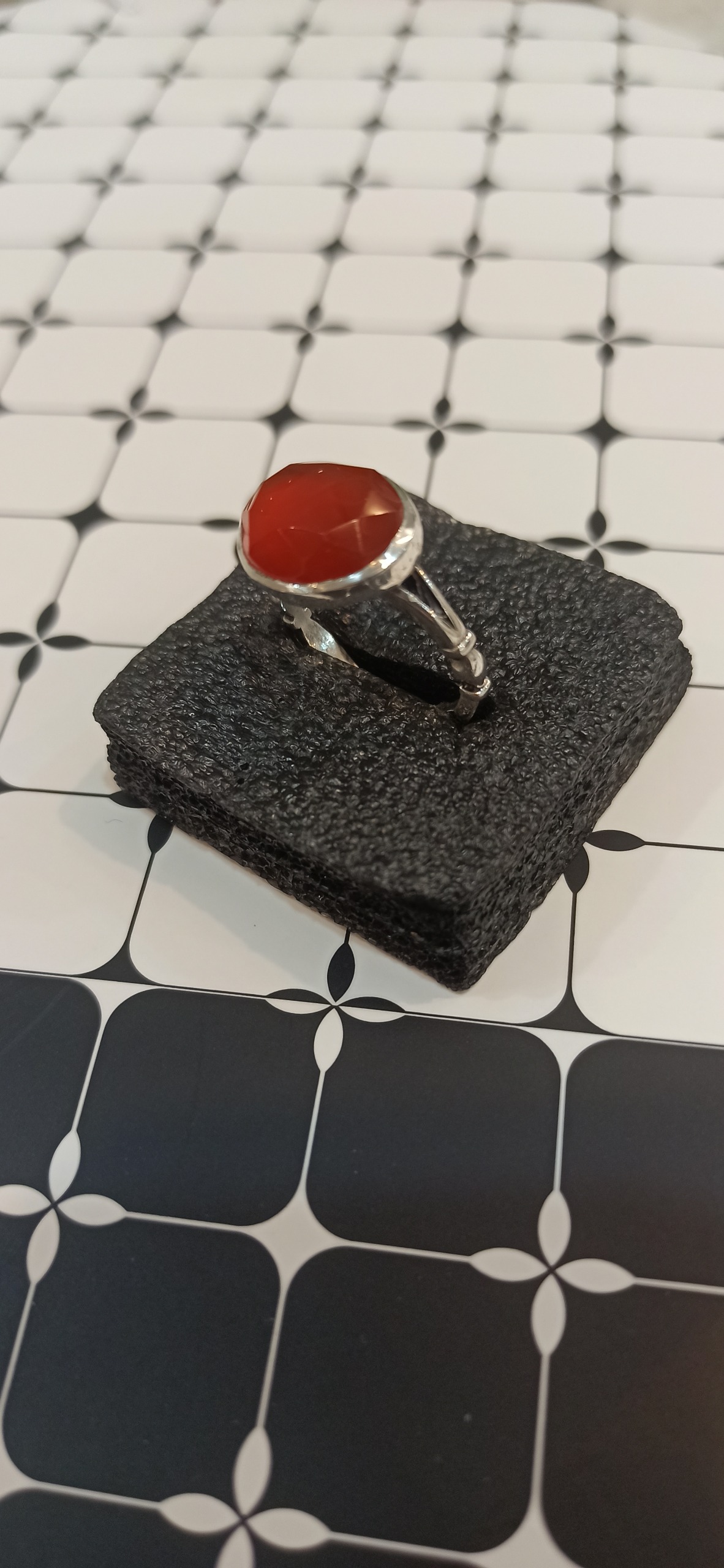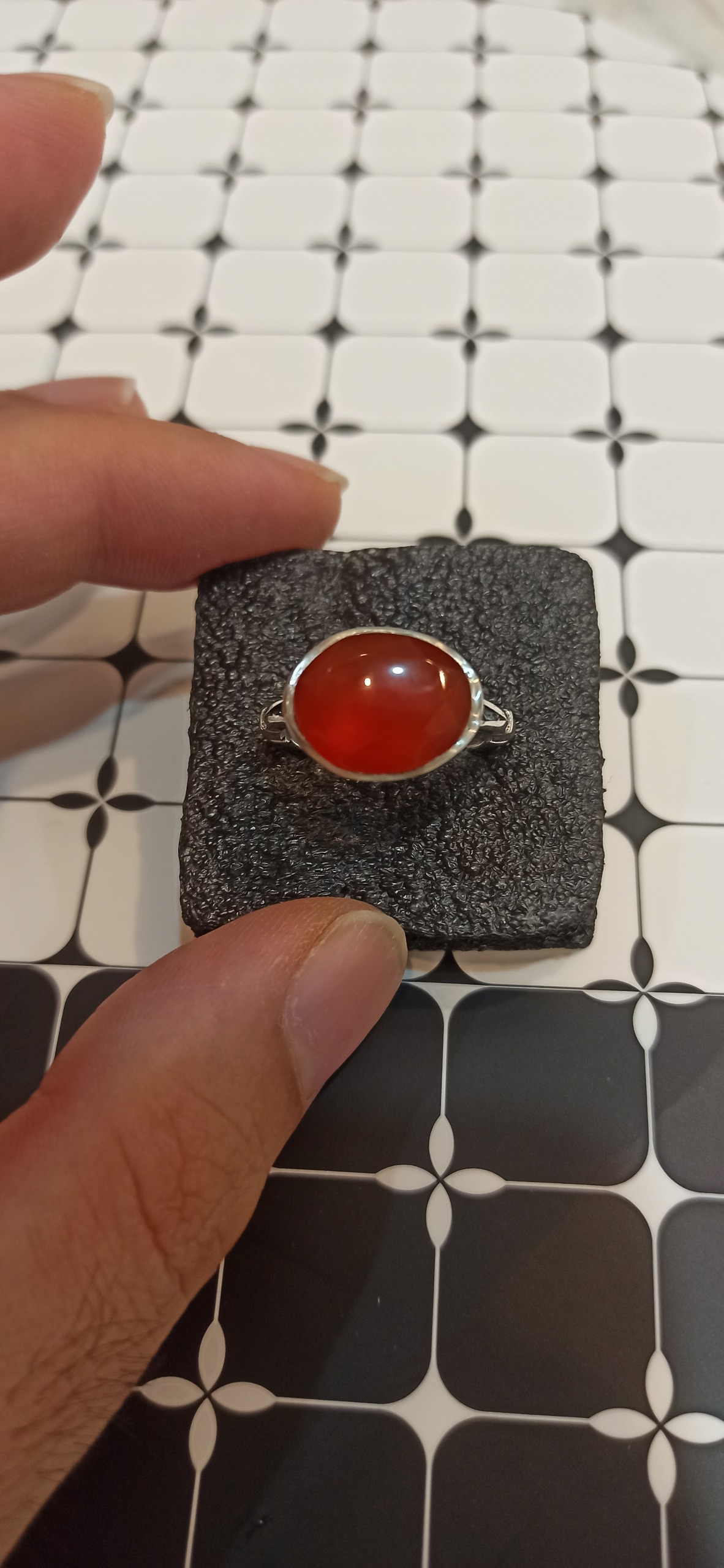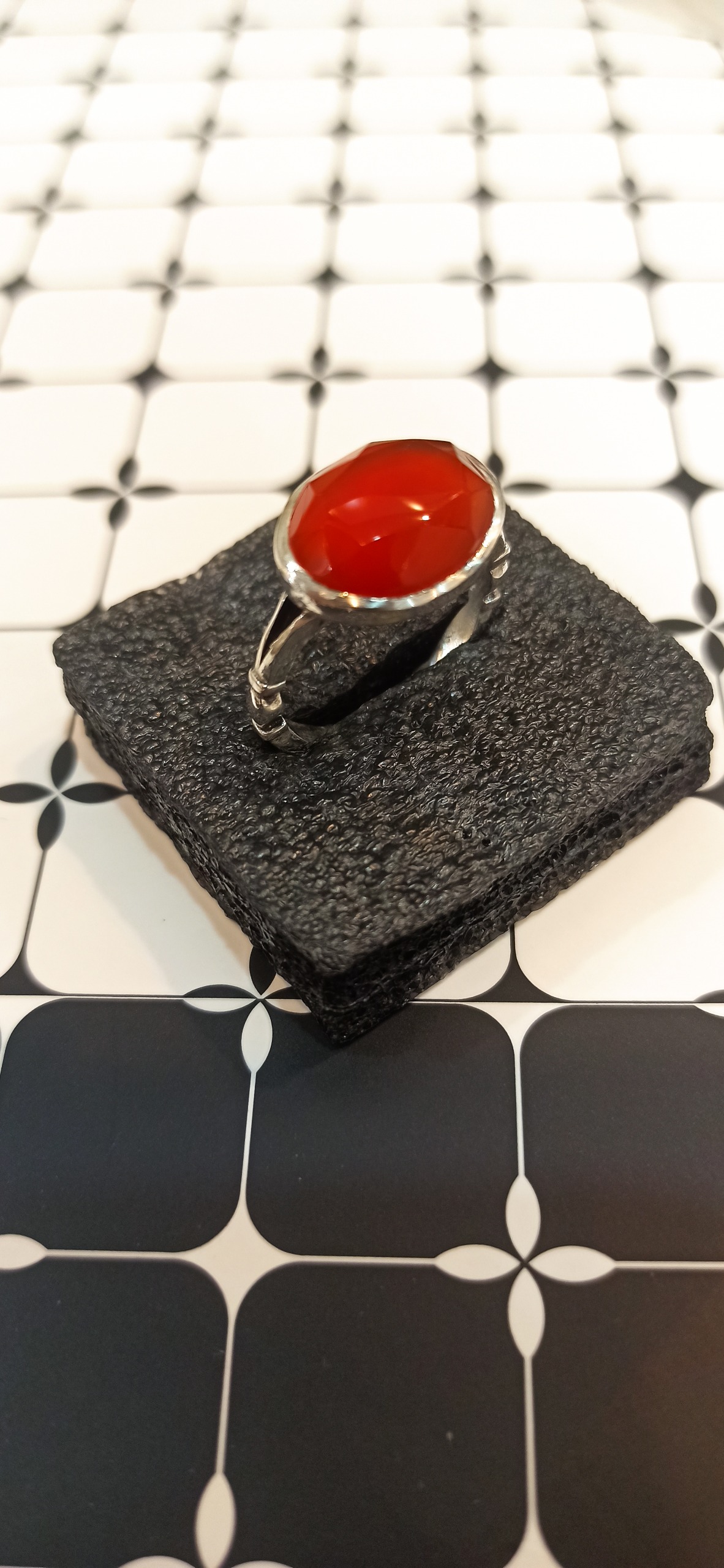 انگشتر نقره عقیق یمنی یمانی پرتقالی تراش جواهری