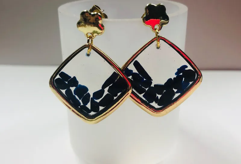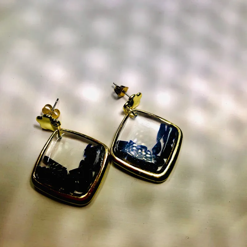 گوشواره طلایی سنگ و رزین