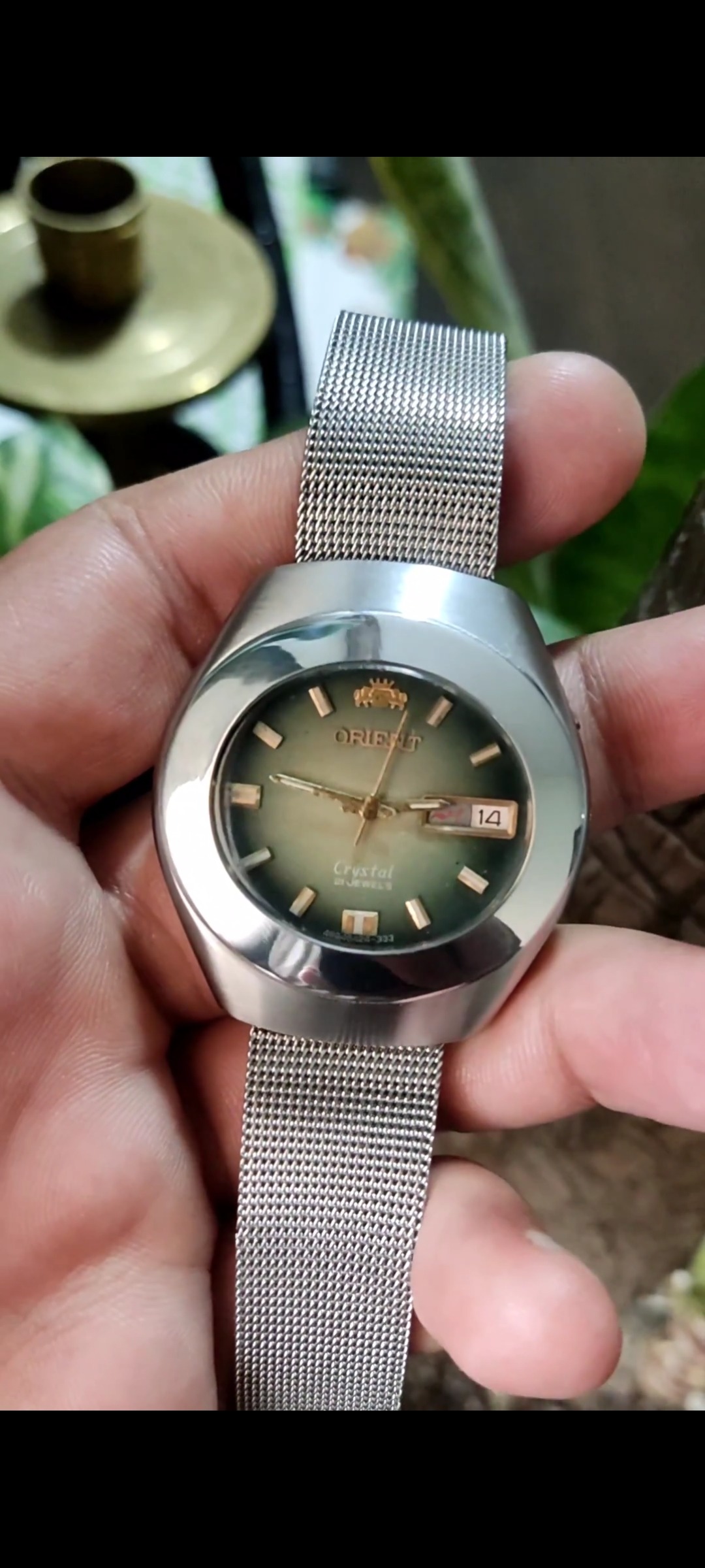 اورینت آپولو اصل ژاپن اتوماتیک .بسیار بسیار تمیز .تمام فابریک ، آکبند .سری معروف آپولو صفحه زیتونی .تمام استیل .بند بافتِ حصیری .