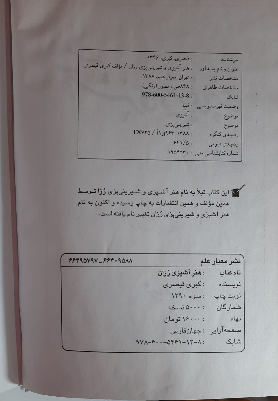 هنر آشپزی و شیرینی پزی رزان
