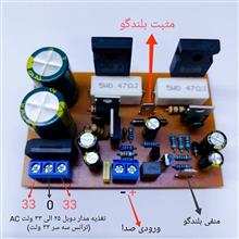 ولتاژ کاری دوبل یا همان متقارن 25 الی 33 ولت AC و 3 آمپر (ترانس پیشنهادی 33 ولت دوبل 3 آمپر) کافیه ترانس را مستقیما به مدار متصل کنید