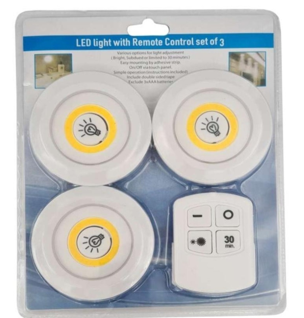 ست 3 عددی چراغ زیر کبینت ریموت دار (باتری خور ) قابل استفاده در محلهایی مانند انباری , کمد ، مسیرهای فاقد روشنایی که امکان سیمکشی نیست و کاربردهای فراوان دیکر