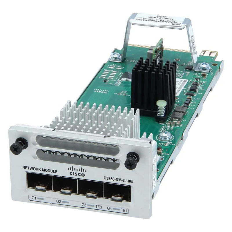 وظیفه کلی این قطعه تبدیل سیگنال دیجیتال به سیگنال نوری میباشد و به دلیل SFP+/ SFP بودنش سیگنال ها تقویت میشوند و برد های کیلومتری را پوشش میدهند. ماژول سیسکو C3850-NM-2-10G ، دارای دو پورت با سرعت 10G و دو پورت 1G میباشد. این ماژول از نوع SFP+/SFP میباشد و با سوئیچ های سیسکو سری Catalyst 3850 سازگار است.