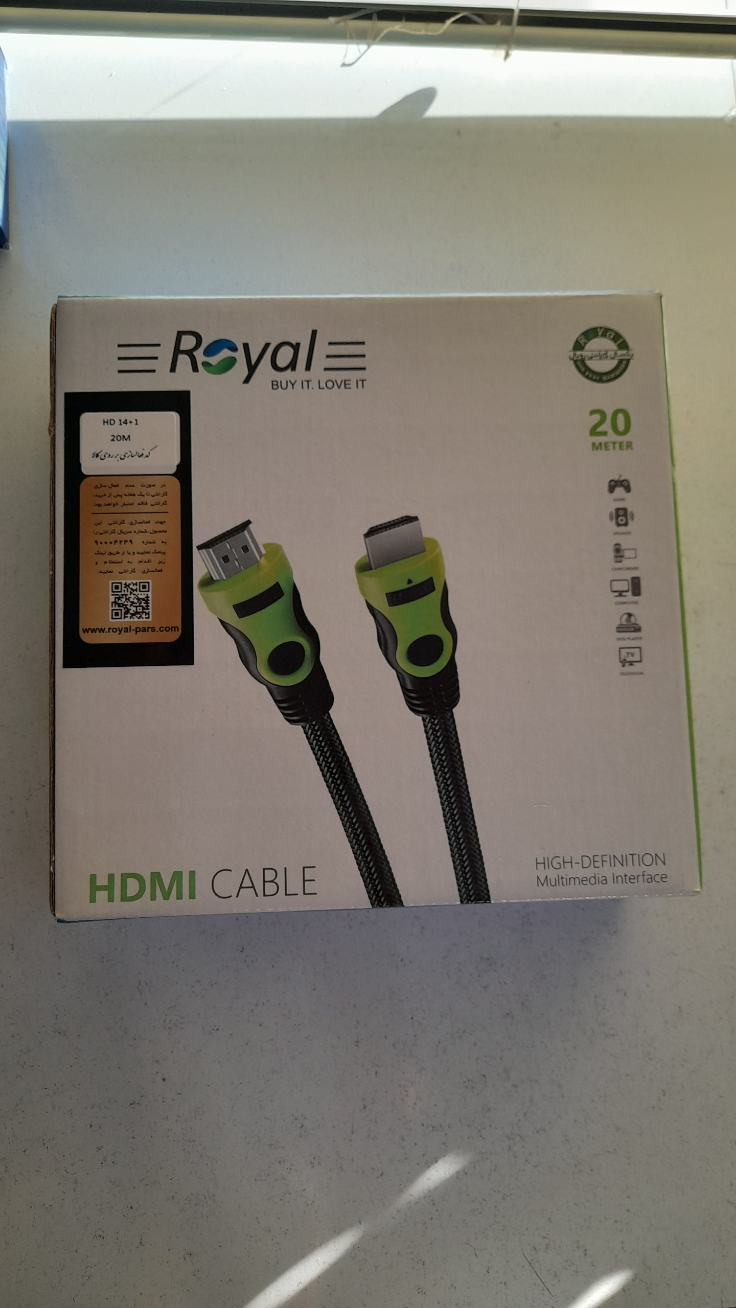 با گذشت زمان و پیشرفت در حوزه تکنولوژی کابل های RCA و AV و ... کم جای خود را به کابل های صدا و تصویر HDMI داده اند. کابلهای HDMI در کیفیت و نسخه های کابل متفاوت ساخته می شوند. این مدل از HDMI که میخواهیم امروزبرای شما عزیزان معرفی کنیم کابل اچ دی ام ای 20 متری رویال ROYAL می باشد که از کیفیت بسیار خوبی برخوردار بوده و قابلیت پشتیانی از کیفیت 2K و FULLHD را دارد. همچنین کابل HDMI رویال متراژ 20 متری با تکنولوژی سه بعدی و اترنت سازگار بوده و از آن ها پشتیبانی می کند. بسیاری از کابل های HD موجود در بازار, شاید در این متراژ قیمت به مراتب پایین تری داشته باشند, اما نکته مهم کیفیت و انتقال تصویر بدون نویز و بدون قطعی صدا می باشد که بسیاری از کابل های بی کیفیت موجود در بازار این مشکل را دارند