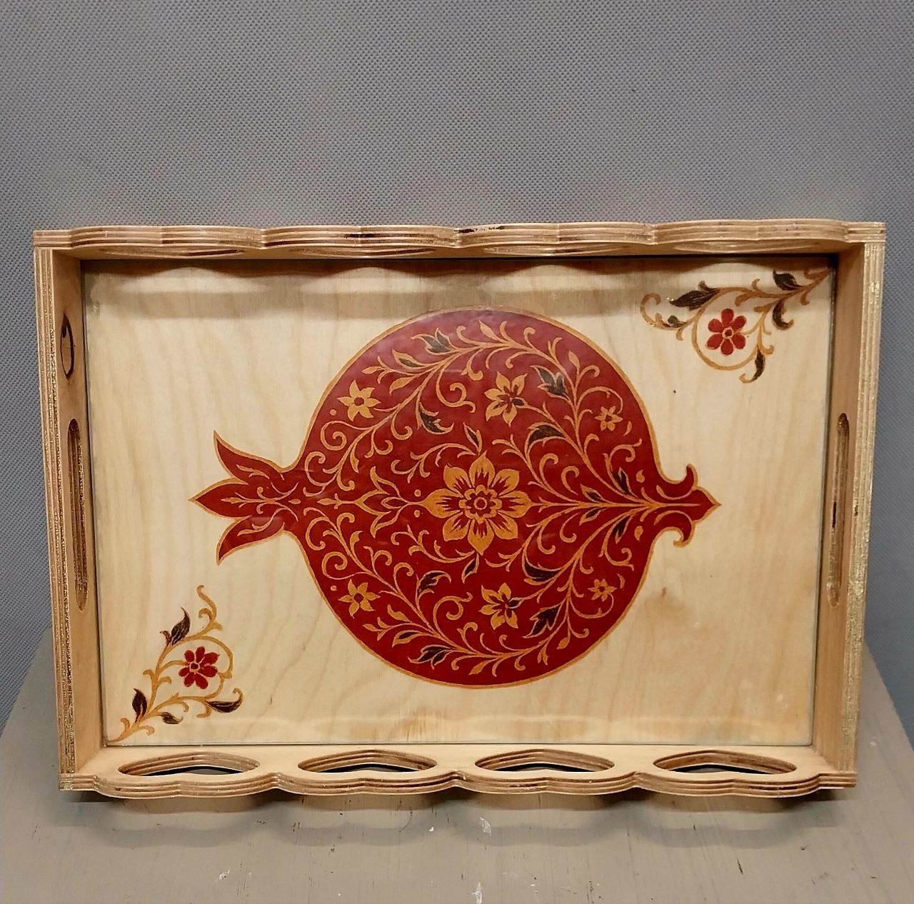 سینی چوبی گل اناری