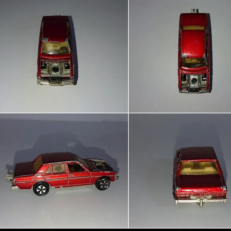 ایراد : شیشه سمت راننده و شاگرد شکسته . کاپوت جلو نداره . چرخ های عقب شل شده .
